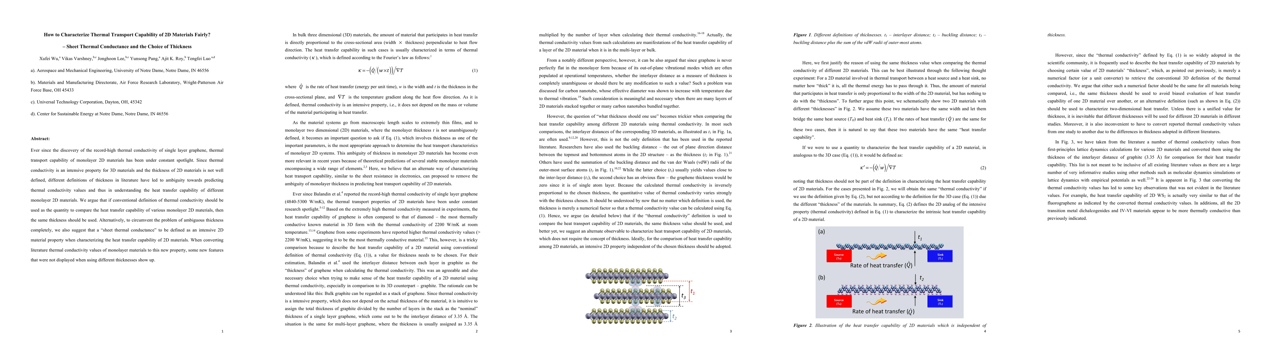Researchers propose a new method to characterize thermal transport capability of 2D materials by using either uniform thickness or sheet thermal conductance as intensive properties.