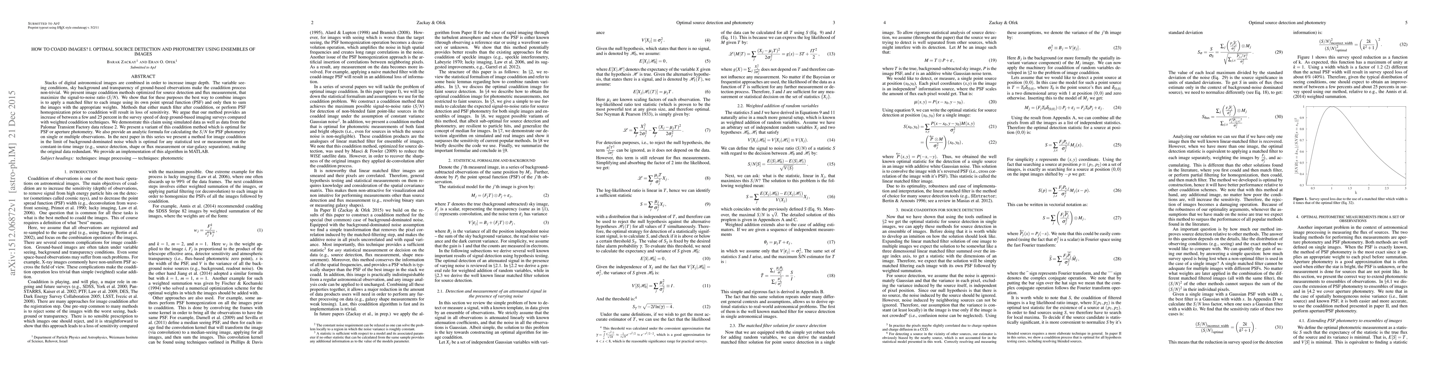 This paper introduces optimized methods for coadding astronomical images to enhance depth, emphasizing matched filtering with individual PSFs for superior source detection and photometry. The approach outperforms traditional weighted coaddition, potentially increasing survey speed by up to 25%. The findings are supported by simulations and real data from the Palomar Transient Factory, with a follow-up paper addressing background-dominated noise scenarios for various image analyses.