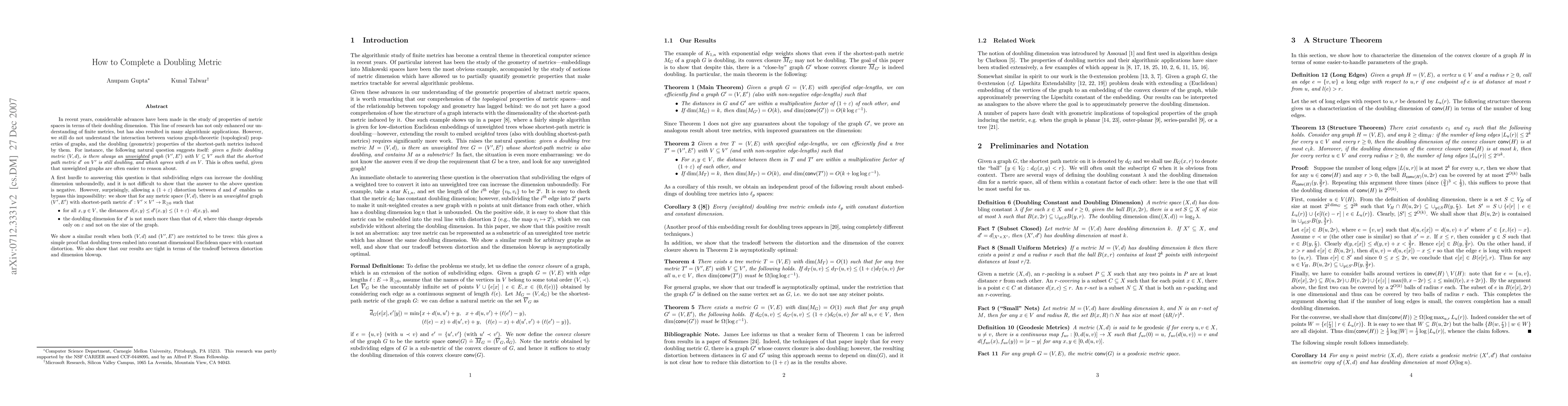 This paper demonstrates how to construct an unweighted graph from any given finite doubling metric space that preserves the metric's distances and doubling dimension, with distortion controlled by a small parameter. It also proves that doubling trees can be embedded into Euclidean space with constant distortion, showing the tightness of the results.