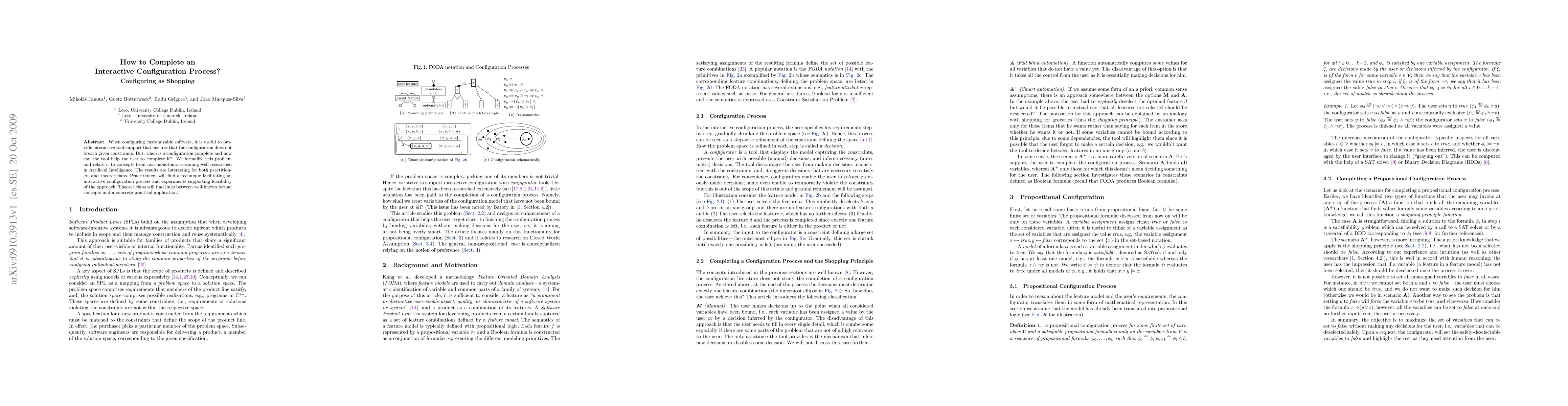 When configuring customizable software, it is useful to provide interactive tool-support that ensures that the configuration does not breach given constraints. But, when is a configuration complete and how can the tool help the user to complete it? We formalize this problem and relate it to concepts from non-monotonic reasoning well researched in Artificial Intelligence. The results are interesting for both practitioners and theoreticians. Practitioners will find a technique facilitating an interactive configuration process and experiments supporting feasibility of the approach. Theoreticians will find links between well-known formal concepts and a concrete practical application.