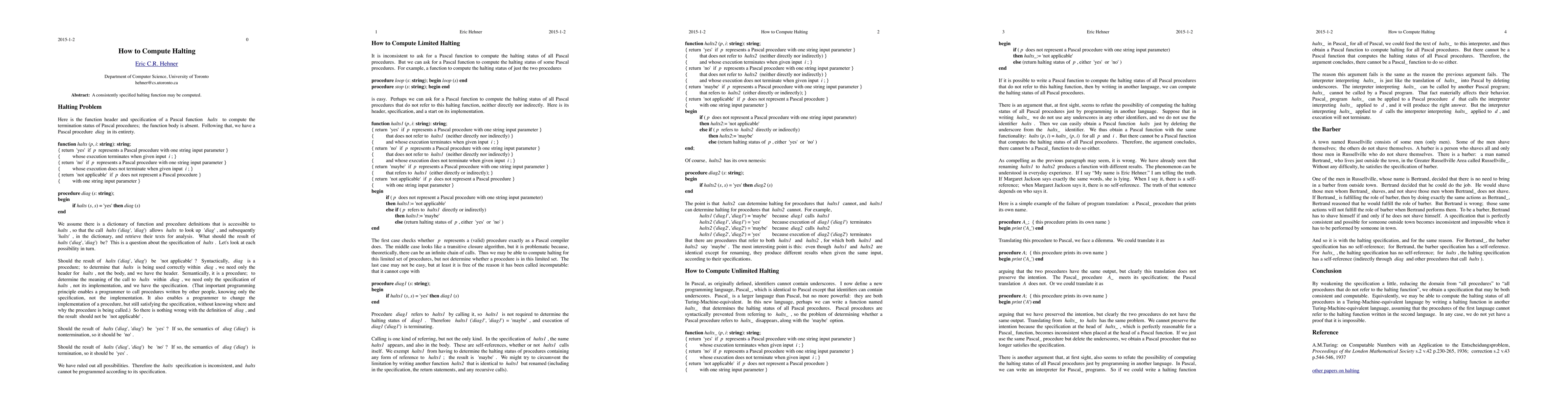 A consistently specified halting function may be computed.