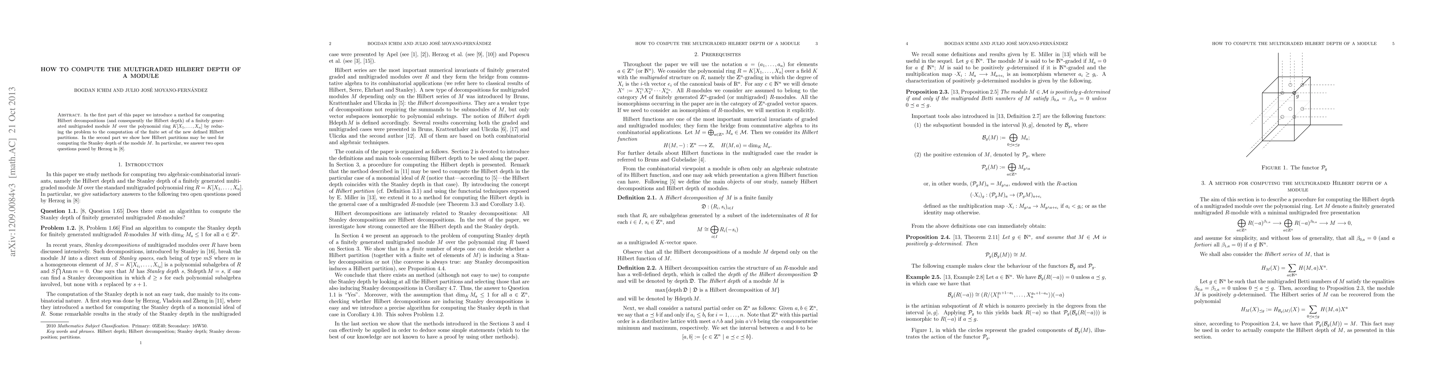 This paper presents a method for computing the multigraded Hilbert depth of a finitely generated module by reducing it to the computation of Hilbert partitions, and it also demonstrates the application of Hilbert partitions in computing the Stanley depth of the module.