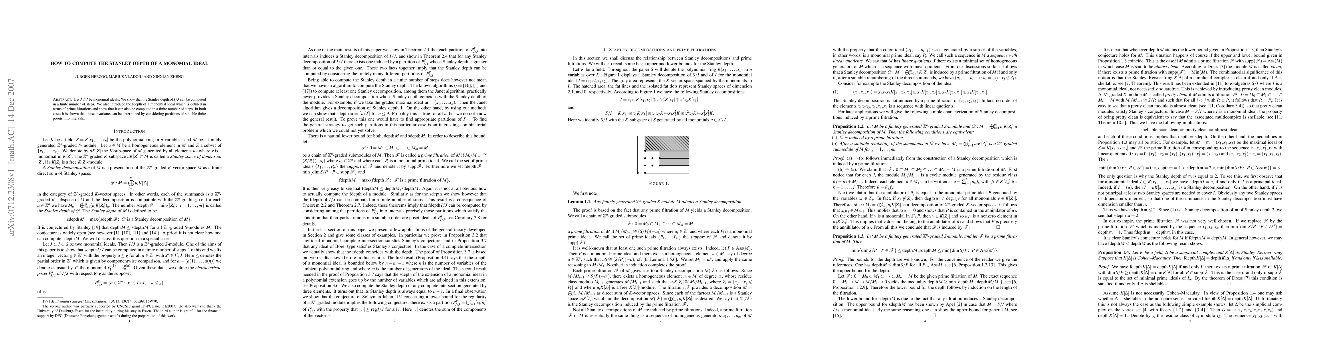 The paper presents a method to compute the Stanley depth of a monomial ideal by considering partitions of suitable finite posets into intervals, introducing the $\fdepth$ of a monomial ideal defined in terms of prime filtrations.
