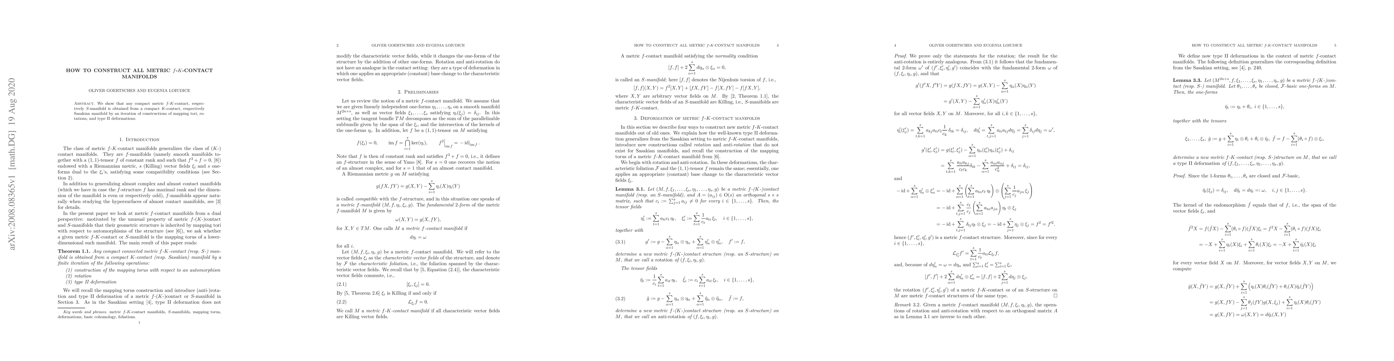We show that any compact metric $f$-$K$-contact, respectively $S$-manifold is obtained from a compact $K$-contact, respectively Sasakian manifold by an iteration of constructions of mapping tori, rotations, and type II deformations.