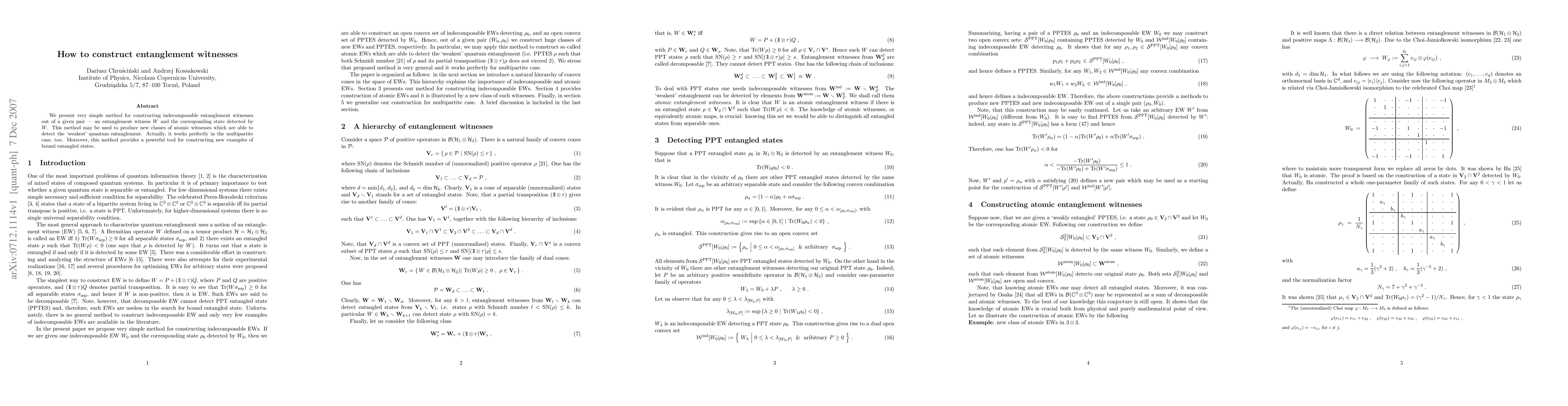 We present very simple method for constructing indecomposable entanglement witnesses out of a given pair -- an entanglement witness W and the corresponding state detected by W. This method may be used to produce new classes of atomic witnesses which are able to detect the `weakest' quantum entanglement. Actually, it works perfectly in the multipartite case, too. Moreover, this method provides a powerful tool for constructing new examples of bound entangled states.