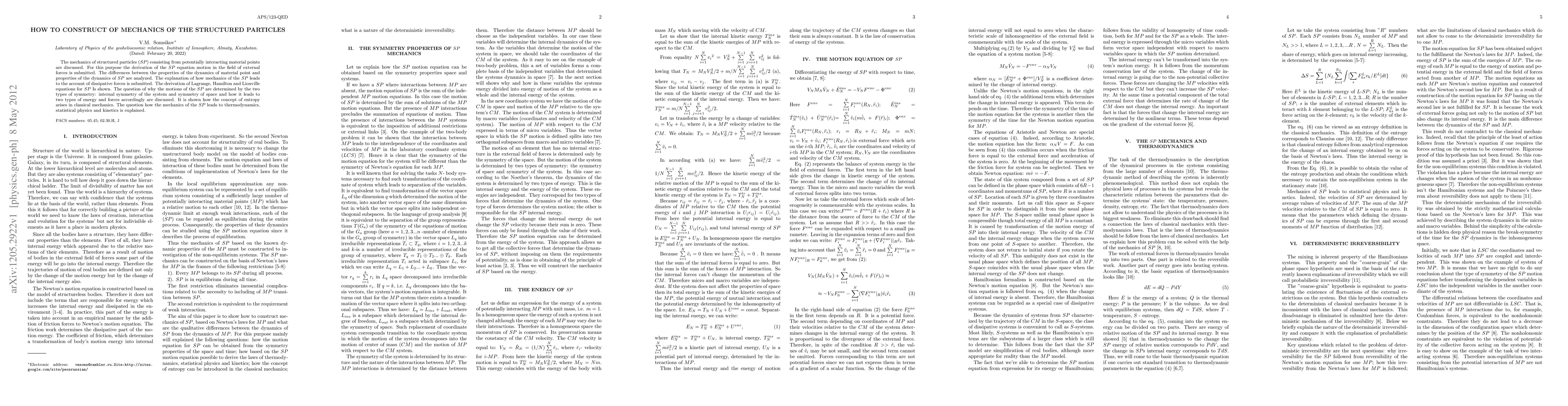 This paper discusses the mechanics of structured particles, deriving equations for motion under external forces and exploring how they relate to dissipative forces, thermodynamics, statistical physics, and kinetics.