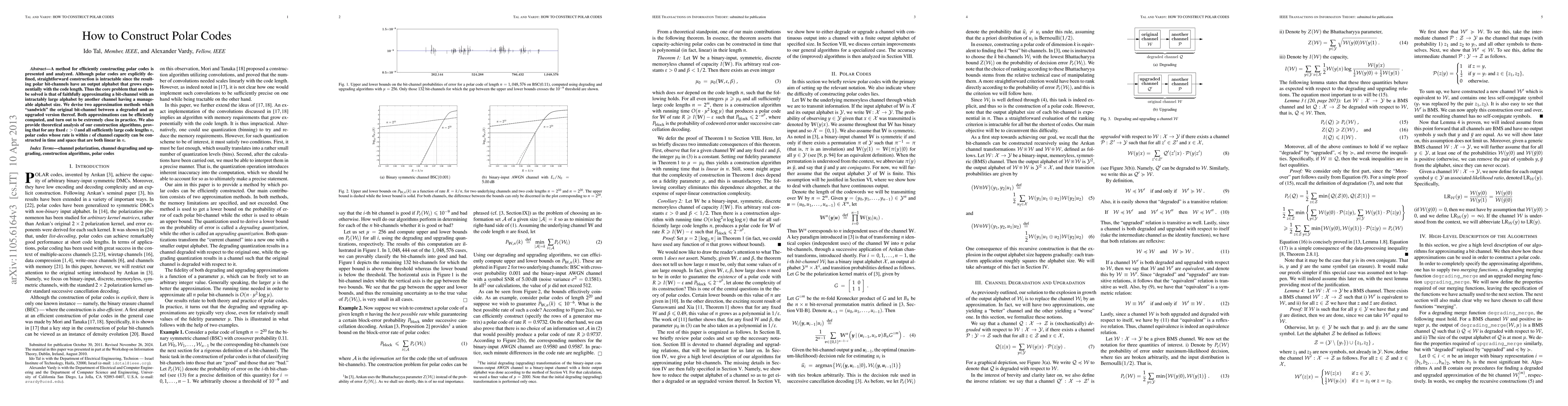 The paper introduces a method to efficiently construct polar codes, addressing the issue of exponentially growing output alphabets with code length. It proposes two approximation techniques to manage this, proven to be practically close to the original bit-channel. The construction algorithms ensure polar codes within any specified capacity gap can be generated in linear time and space for large code lengths.