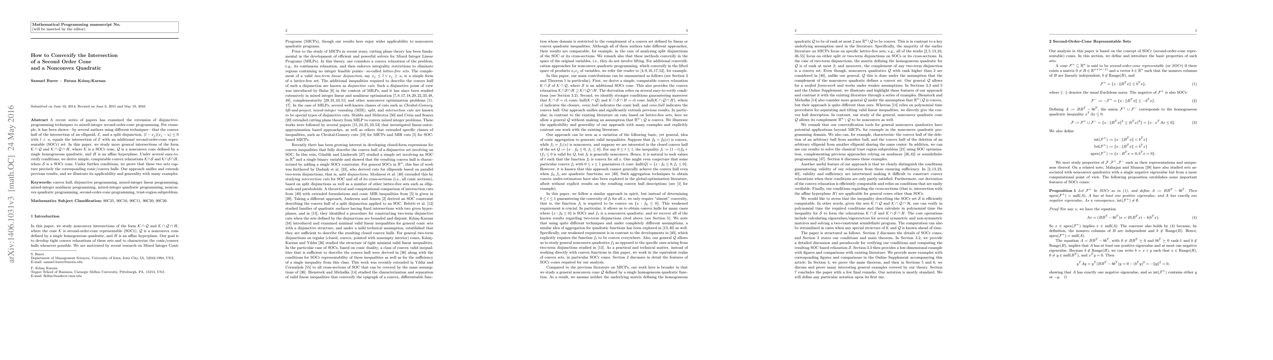 A recent series of papers has examined the extension of disjunctive-programming techniques to mixed-integer second-order-cone programming. For example, it has been shown---by several authors using different techniques---that the convex hull of the intersection of an ellipsoid, $E$, and a split disjunction, $(l - x_j)(x_j - u) \le 0$ with $l < u$, equals the intersection of $E$ with an additional second-order-cone representable (SOCr) set. In this paper, we study more general intersections of the form $K \cap Q$ and $K \cap Q \cap H$, where $K$ is a SOCr cone, $Q$ is a nonconvex cone defined by a single homogeneous quadratic, and $H$ is an affine hyperplane. Under several easy-to-verify conditions, we derive simple, computable convex relaxations $K \cap S$ and $K \cap S \cap H$, where $S$ is a SOCr cone. Under further conditions, we prove that these two sets capture precisely the corresponding conic/convex hulls. Our approach unifies and extends previous results, and we illustrate its applicability and generality with many examples.