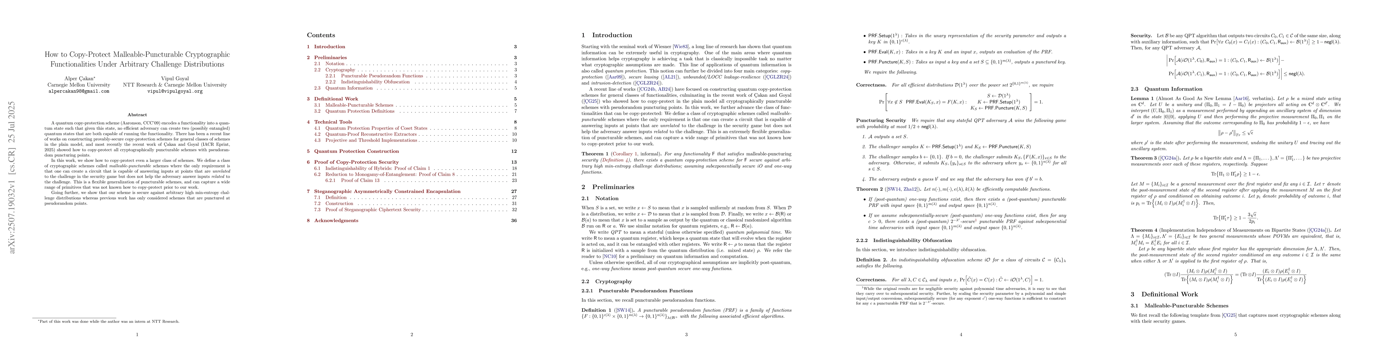 A quantum copy-protection scheme (Aaronson, CCC 2009) encodes a functionality into a quantum state such that given this state, no efficient adversary can create two (possibly entangled) quantum states that are both capable of running the functionality. There has been a recent line of works on constructing provably-secure copy-protection schemes for general classes of schemes in the plain model, and most recently the recent work of \c{C}akan and Goyal (IACR Eprint, 2025) showed how to copy-protect all cryptographically puncturable schemes with pseudorandom puncturing points. In this work, we show how to copy-protect even a larger class of schemes. We define a class of cryptographic schemes called malleable-puncturable schemes where the only requirement is that one can create a circuit that is capable of answering inputs at points that are unrelated to the challenge in the security game but does not help the adversary answer inputs related to the challenge. This is a flexible generalization of puncturable schemes, and can capture a wide range of primitives that was not known how to copy-protect prior to our work. Going further, we show that our scheme is secure against arbitrary high min-entropy challenge distributions whereas previous work has only considered schemes that are punctured at pseudorandom points.