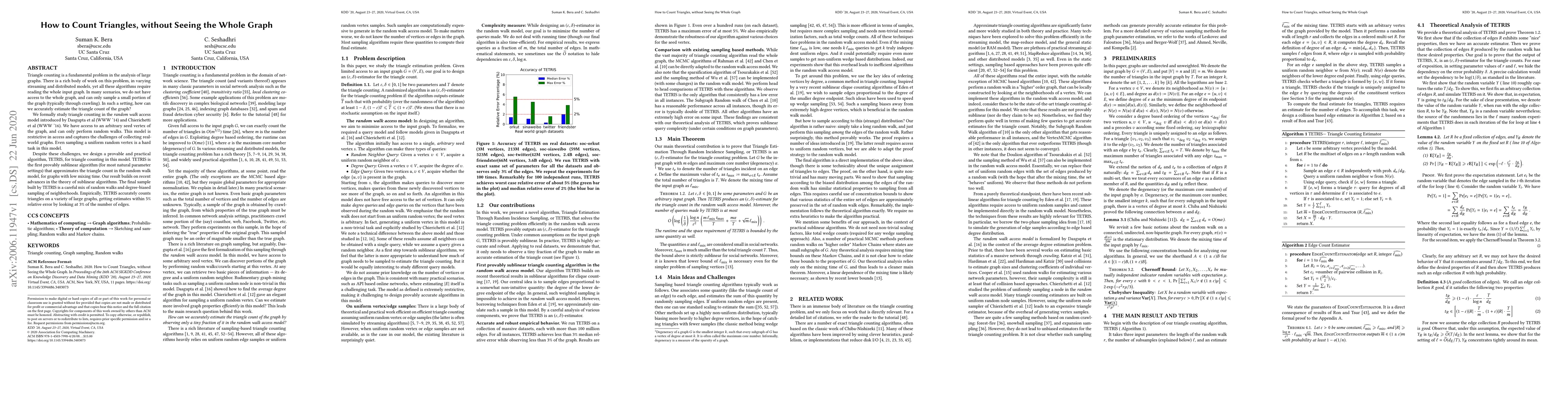The research uses wedge sampling to estimate triangle counts in large graphs.