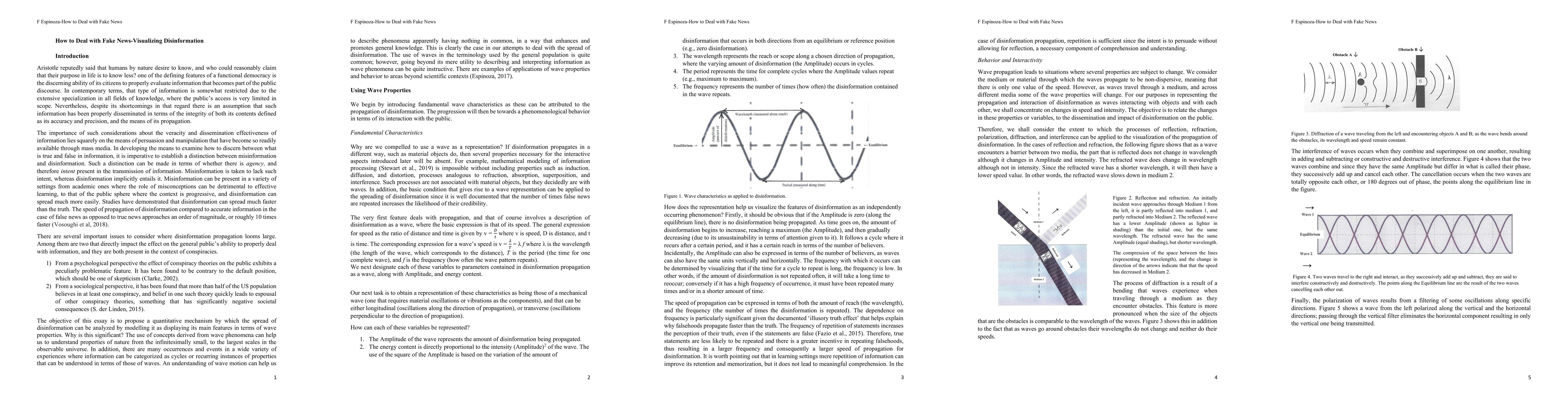 The current public sense of anxiety in dealing with disinformation as manifested by so-called fake news is acutely displayed by the reaction to recent events prompted by a belief in conspiracies among certain groups. A model to deal with disinformation is proposed; it is based on a demonstration of the analogous behavior of disinformation to that of wave phenomena. Two criteria form the basis to combat the deleterious effects of disinformation: the use of a refractive medium based on skepticism as the default mode, and polarization as a filter mechanism to analyze its merits based on evidence. Critical thinking is enhanced since the first one tackles the pernicious effect of the confirmation bias, and the second the tendency towards attribution, both of which undermine our efforts to think and act rationally. The benefits of such a strategy include an epistemic reformulation of disinformation as an independently existing phenomenon, that removes its negative connotations when perceived as being possessed by groups or individuals.