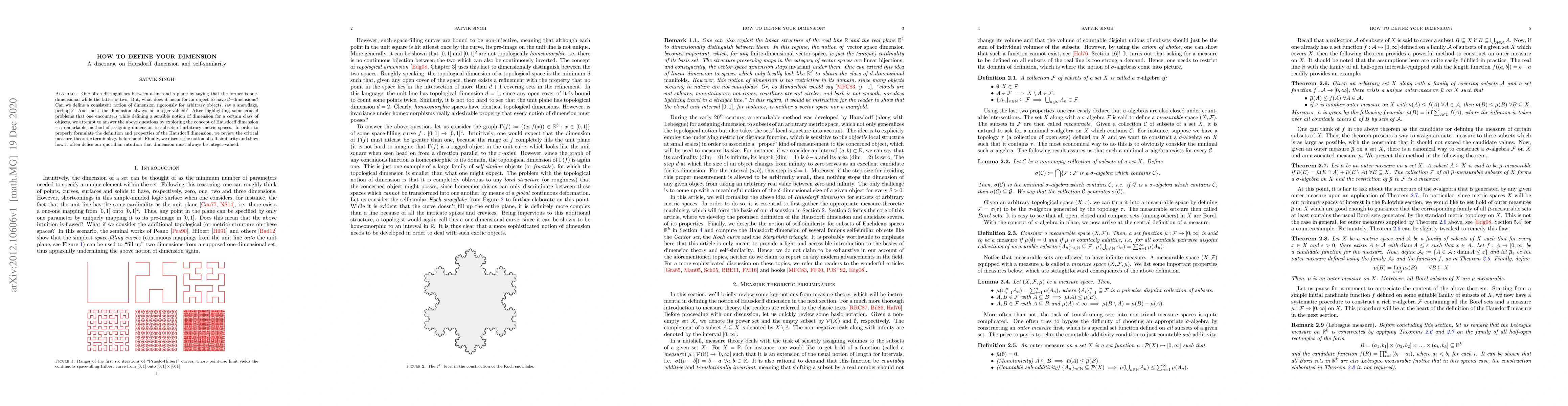 One often distinguishes between a line and a plane by saying that the former is one-dimensional while the latter is two. But, what does it mean for an object to have $d-$dimensions? Can we define a consistent notion of dimension rigorously for arbitrary objects, say a snowflake, perhaps? And must the dimension always be integer-valued? After highlighting some crucial problems that one encounters while defining a sensible notion of dimension for a certain class of objects, we attempt to answer the above questions by exploring the concept of Hausdorff dimension -- a remarkable method of assigning dimension to subsets of arbitrary metric spaces. In order to properly formulate the definition and properties of the Hausdorff dimension, we review the critical measure-theoretic terminology beforehand. Finally, we discuss the notion of self-similarity and show how it often defies our quotidian intuition that dimension must always be integer-valued.