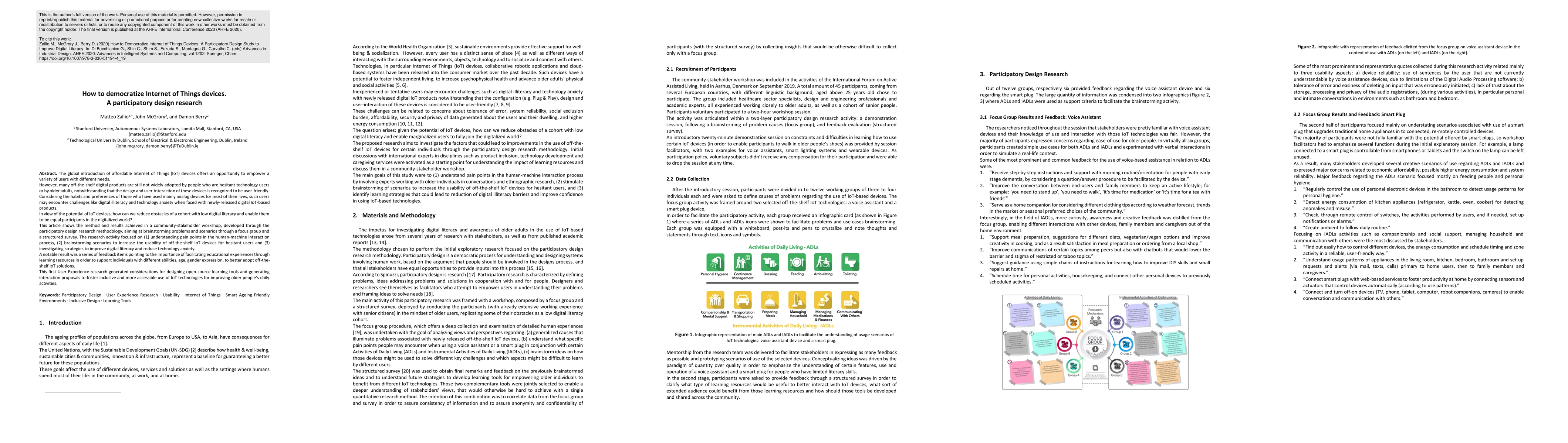 The global introduction of affordable Internet of Things (IoT) devices offers an opportunity to empower a large variety of users with different needs. However, many off-the-shelf digital products are still not widely adopted by people who are hesitant technology users or by older adults, notwithstanding that the design and user-interaction of these devices is recognized to be user-friendly. In view of the potential of IoT-based devices, how can we reduce the obstacles of a cohort with low digital literacy and technology anxiety and enable them to be equal participants in the digitalized world? This article shows the method and results achieved in a community-stakeholder workshop, developed through the participatory design methodology, aiming at brainstorming problems and scenarios through a focus group and a structured survey. The research activity focused on understanding factors to increase the usability of off-the-shelf IoT devices for hesitant users and identify strategies for improving digital literacy and reducing technology anxiety. A notable result was a series of feedback items pointing to the importance of creating learning resources to support individuals with different abilities, age, gender expression, to better adopt off-the-shelf IoT-based solutions.