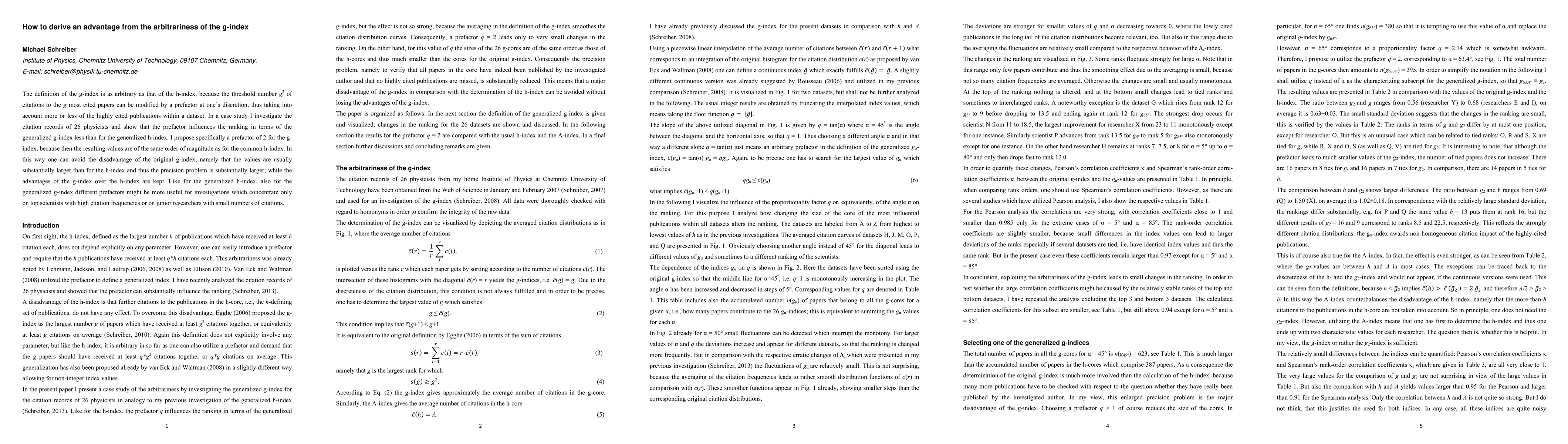 Researchers investigated how modifying a threshold number for the g-index, which measures citations of top papers, affects its ranking. They propose using a prefactor of 2 to balance precision and advantages over the h-index.