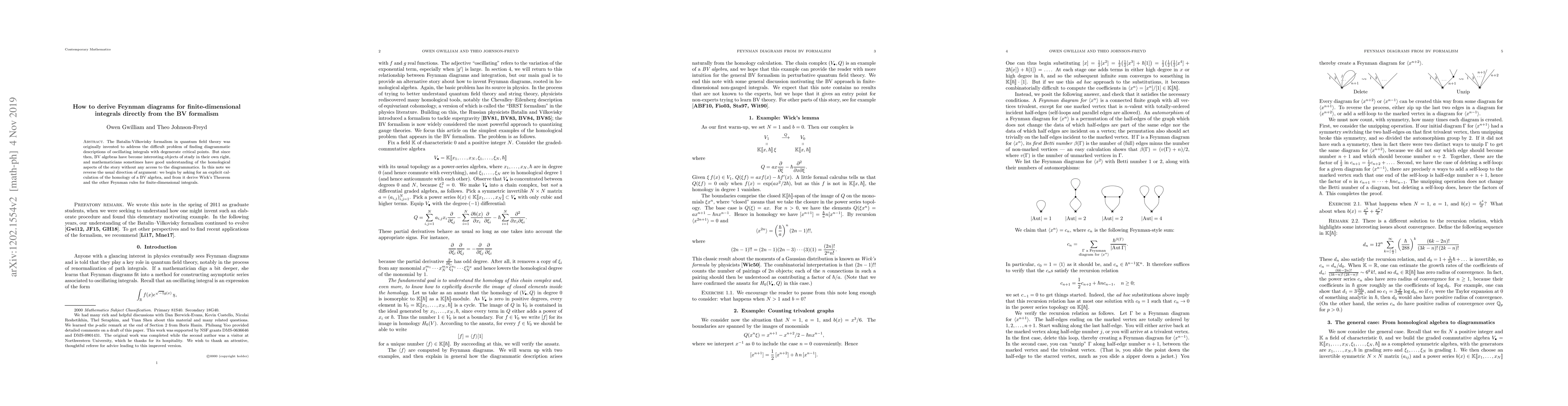 Researchers derived Feynman diagrams for finite-dimensional integrals using the Batalin-Vilkovisky formalism, reversing the usual direction of argument to calculate homology and then derive theoretical rules.