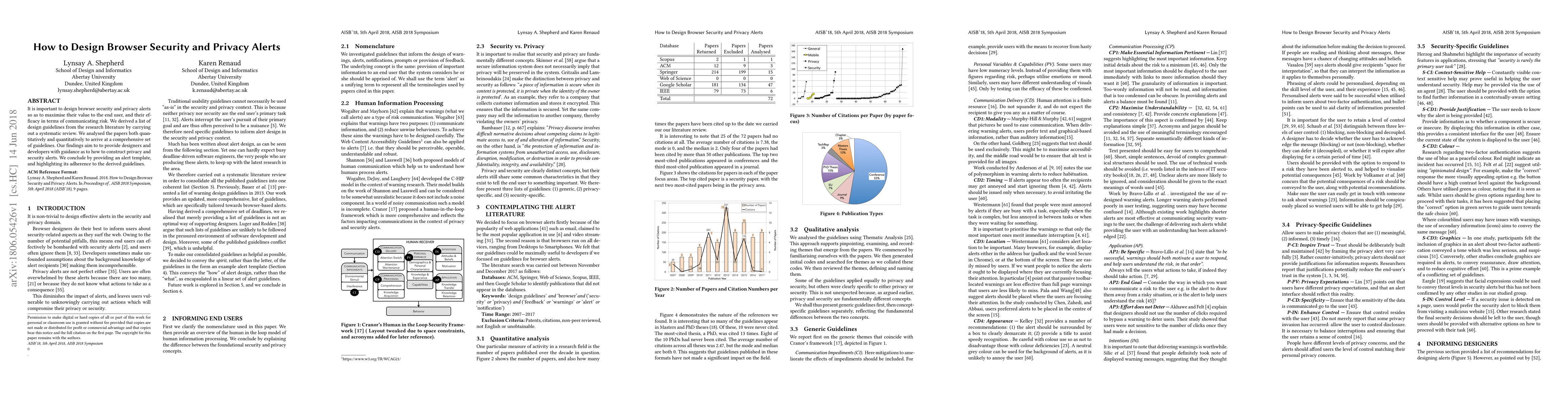 Researchers developed design guidelines for browser security and privacy alerts to maximize user value and risk communication, providing an alert template that adheres to these guidelines.