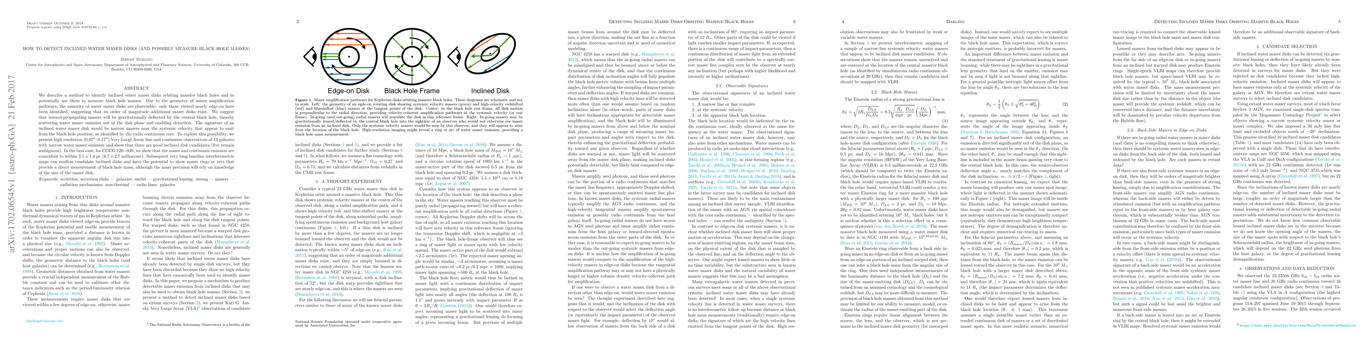 We describe a method to identify inclined water maser disks orbiting massive black holes and to potentially use them to measure black hole masses. Due to the geometry of maser amplification pathways, the minority of water maser disks are observable: only those viewed nearly edge-on have been identified, suggesting that an order of magnitude additional maser disks exist. We suggest that inward-propagating masers will be gravitationally deflected by the central black hole, thereby scattering water maser emission out of the disk plane and enabling detection. The signature of an inclined water maser disk would be narrow masers near the systemic velocity that appear to emit from the black hole position, as identified by the radio continuum core. To explore this possibility, we present high resolution (0.07"-0.17") Very Large Array line and continuum observations of 13 galaxies with narrow water maser emission and show that three are good inclined disk candidates (five remain ambiguous). In the best case, for CGCG 120$-$039, we show that the maser and continuum emission are coincident to within $3.5\pm1.4$ pc ($6.7\pm2.7$ milliarcsec). Subsequent very long baseline interferometric maps can confirm candidate inclined disks and have the potential to show maser rings or arcs that provide a direct measurement of black hole mass, although the mass precision will rely on knowledge of the size of the maser disk.