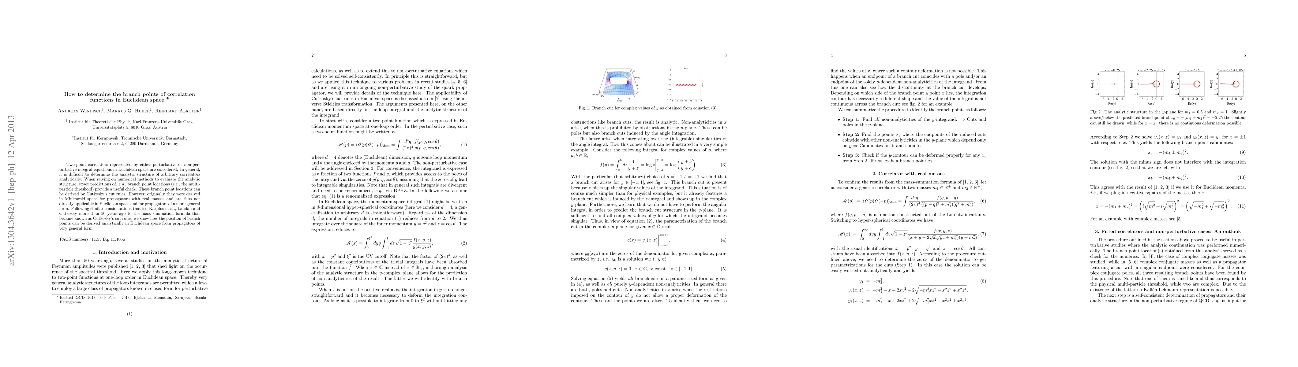 Two-point correlators represented by either perturbative or non-perturbative integral equations in Euclidean space are considered. In general, it is difficult to determine the analytic structure of arbitrary correlators analytically. When relying on numerical methods to evaluate the analytic structure, exact predictions of, e.g., branch point locations (i.e., the multi-particle threshold) provide a useful check. These branch point locations can be derived by Cutkosky's cut rules. However, originally they were derived in Minkowski space for propagators with real masses and are thus not directly applicable in Euclidean space and for propagators of a more general form. Following similar considerations that led Karplus et al., Landau and Cutkosky more than 50 years ago to the mass summation formula that became known as Cutkosky's cut rules, we show how the position of branch points can be derived analytically in Euclidean space from propagators of very general form.