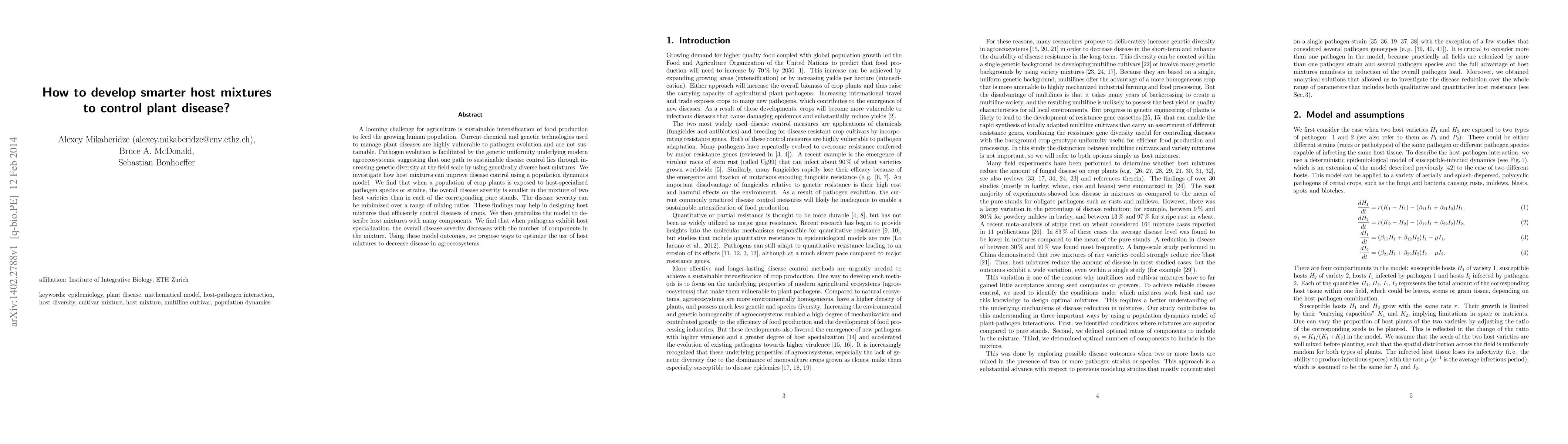 Using a population dynamics model, researchers found that mixing genetically diverse host varieties with pathogen-specialized strains can reduce disease severity in crop plants. The study suggests optimizing host mixtures to decrease disease in agroecosystems.