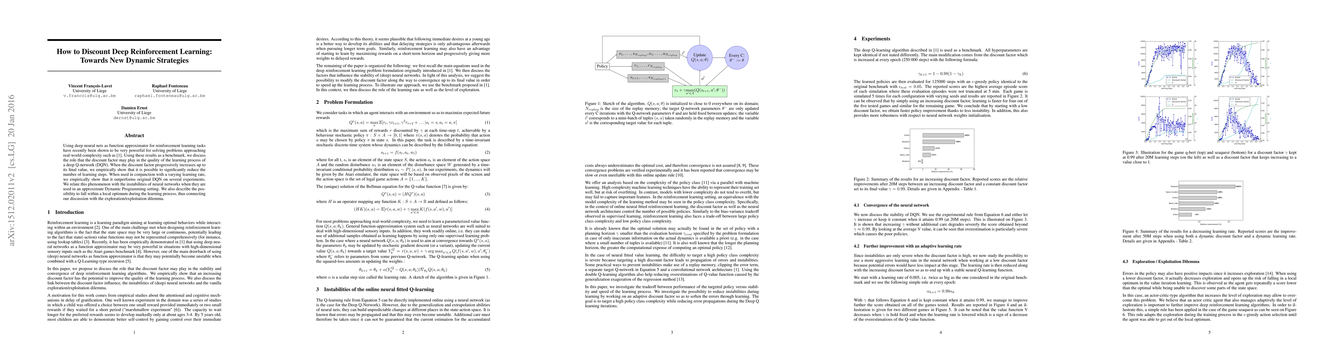 This paper explores how adjusting the discount factor in deep Q-networks (DQN) can significantly reduce learning steps and improve performance when paired with a varying learning rate. It connects these findings to neural network instabilities in dynamic programming and the exploration/exploitation dilemma.