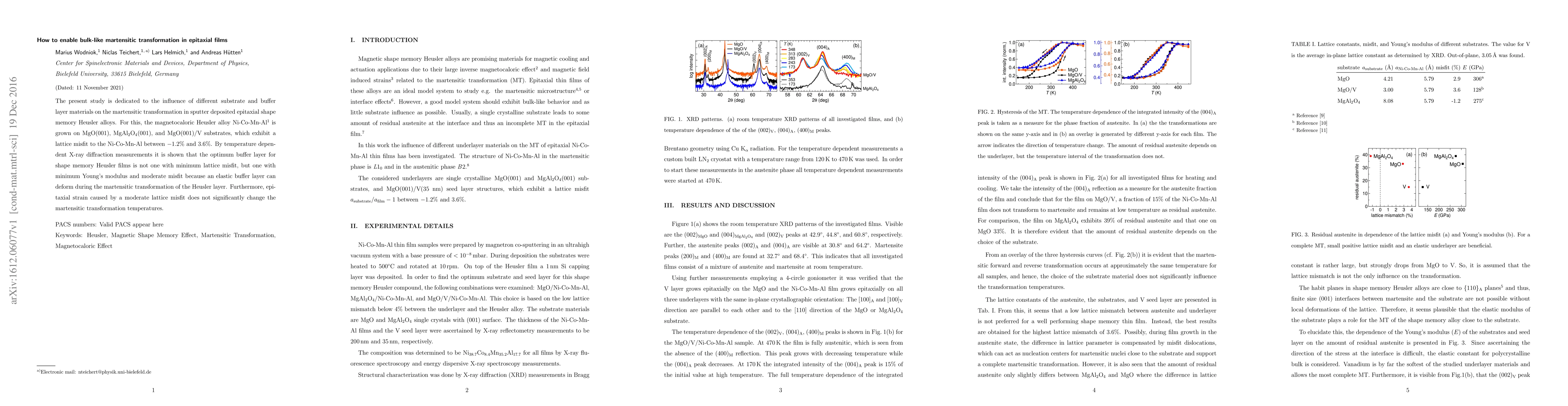 This study investigates the impact of substrate and buffer layer materials on martensitic transformation in epitaxial shape memory Heusler alloys, finding that an elastic buffer layer with moderate lattice misfit and low Young's modulus optimizes the transformation, rather than a layer with minimal misfit. Epitaxial strain from moderate misfit does not significantly alter transformation temperatures.