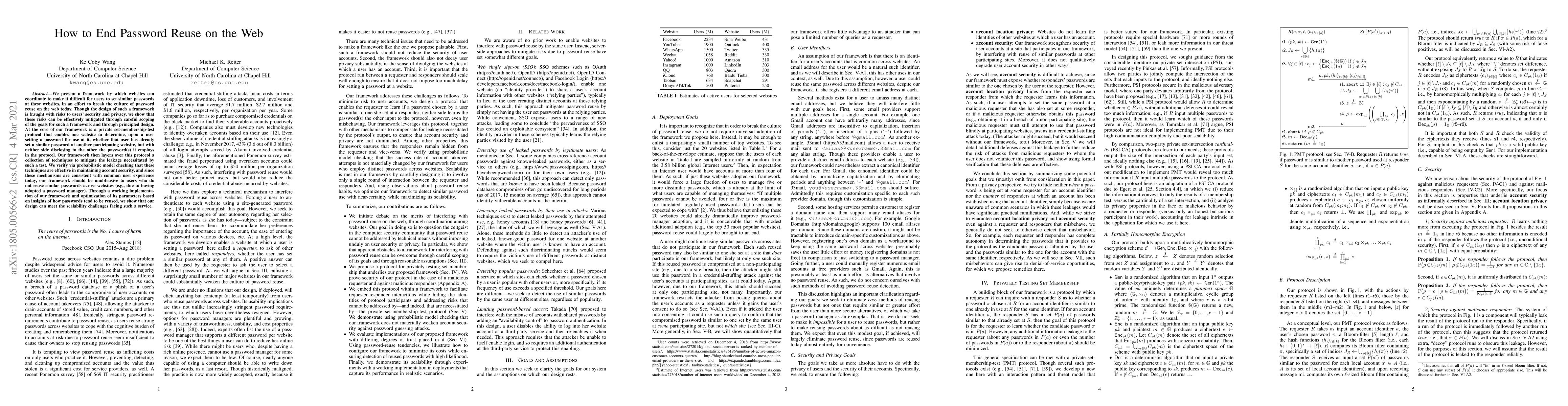 This paper proposes a framework for websites to collaboratively prevent users from reusing similar passwords across sites, addressing security risks through a private set-membership-test protocol and additional mitigation techniques. The design is shown to be effective and scalable, maintaining user security while minimizing privacy leakage.