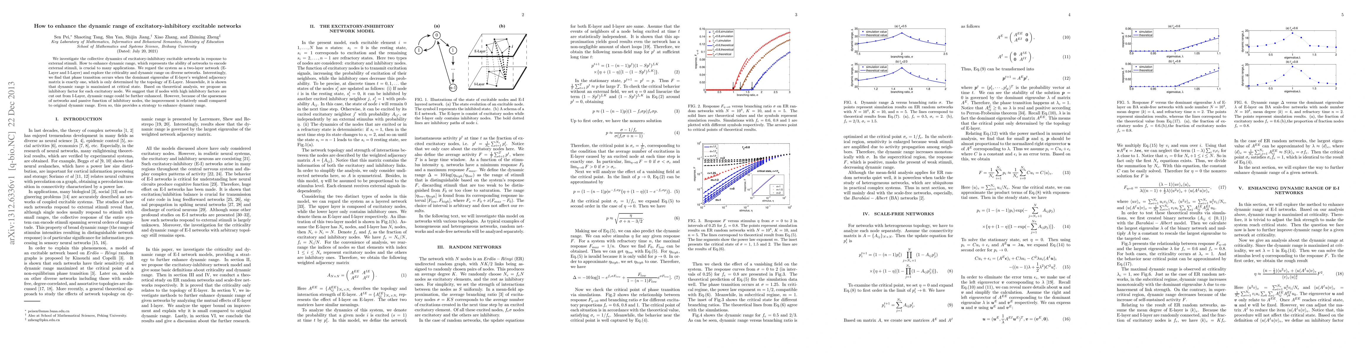 This paper explores how to enhance the dynamic range of excitatory-inhibitory networks, crucial for encoding external stimuli. It finds that dynamic range is maximized at criticality and proposes cutting nodes with high inhibitory factors from the inhibitory layer to further enhance it, though the improvement is relatively small.