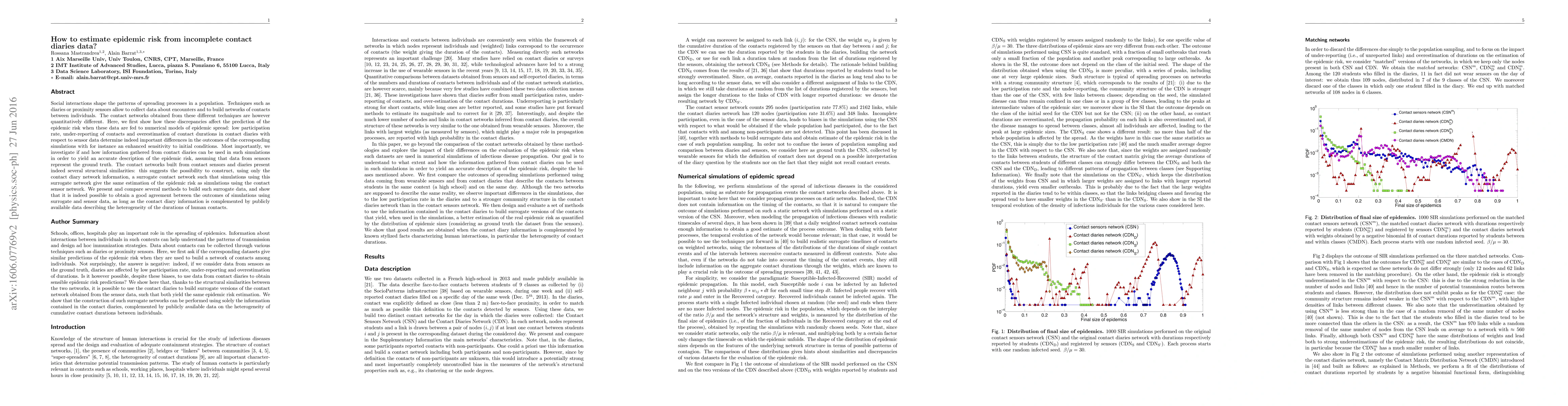 This paper explores how to estimate epidemic risk using incomplete contact diary data, highlighting discrepancies between diary data and sensor data. It proposes methods to construct surrogate contact networks from diary data to accurately predict epidemic risk, achieving good agreement when supplemented with public data on contact duration heterogeneity.