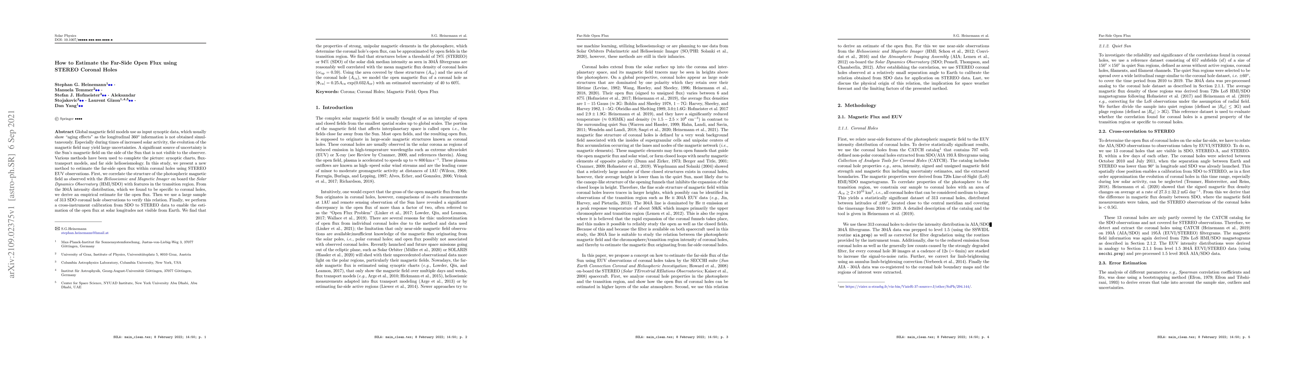This study introduces a novel method to estimate the far-side open flux within coronal holes using STEREO EUV observations, correlating photospheric magnetic field data with transition region features. The derived empirical model estimates the open flux with an uncertainty of 40 to 60%.
