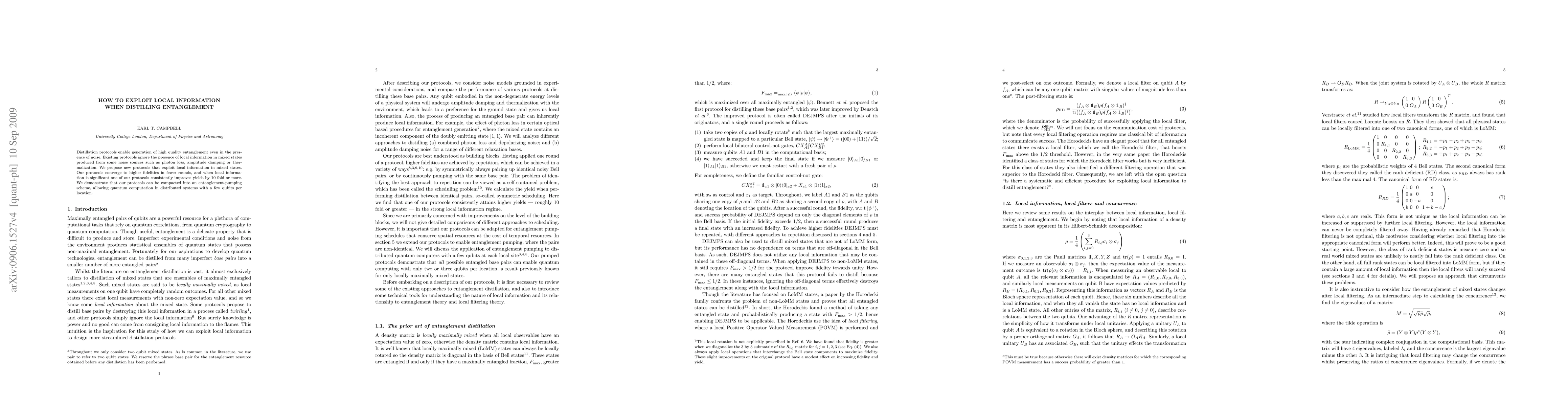 Distillation protocols enable generation of high quality entanglement even in the presence of noise. Existing protocols ignore the presence of local information in mixed states produced from some noise sources such as photon loss, amplitude damping or thermalization. We propose new protocols that exploit local information in mixed states. Our protocols converge to higher fidelities in fewer rounds, and when local information is significant one of our protocols consistently improves yields by 10 fold or more. We demonstrate that our protocols can be compacted into an entanglement-pumping scheme, allowing quantum computation in distributed systems with a few qubits per location.