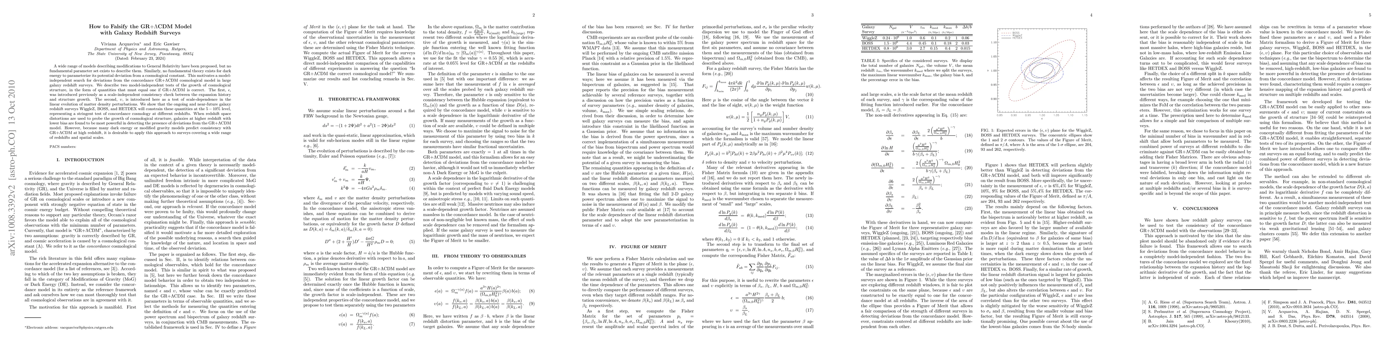 A wide range of models describing modifications to General Relativity have been proposed, but no fundamental parameter set exists to describe them. Similarly, no fundamental theory exists for dark energy to parameterize its potential deviation from a cosmological constant. This motivates a model-independent search for deviations from the concordance GR+LambdaCDM cosmological model in large galaxy redshift surveys. We describe two model-independent tests of the growth of cosmological structure, in the form of quantities that must equal one if GR+LambdaCDM is correct. The first, epsilon, was introduced previously as a scale-independent consistency check between the expansion history and structure growth. The second, upsilon, is introduced here as a test of scale-dependence in the linear evolution of matter density perturbations. We show that the ongoing and near-future galaxy redshift surveys WiggleZ, BOSS, and HETDEX will constrain these quantities at the 5-10% level, representing a stringent test of concordance cosmology at different redshifts. When redshift space distortions are used to probe the growth of cosmological structure, galaxies at higher redshift with lower bias are found to be most powerful in detecting deviations from the GR+LambdaCDM model.