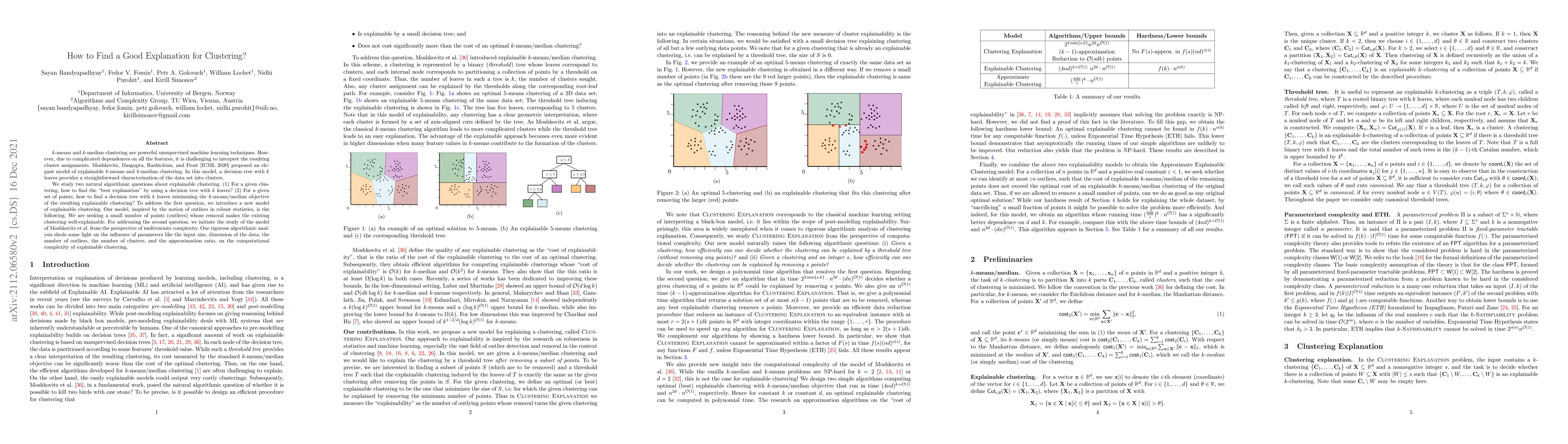 Researchers develop a new model for explainable clustering, focusing on finding the best explanation for cluster assignments using decision trees with k leaves and minimizing the k-means/median objective.