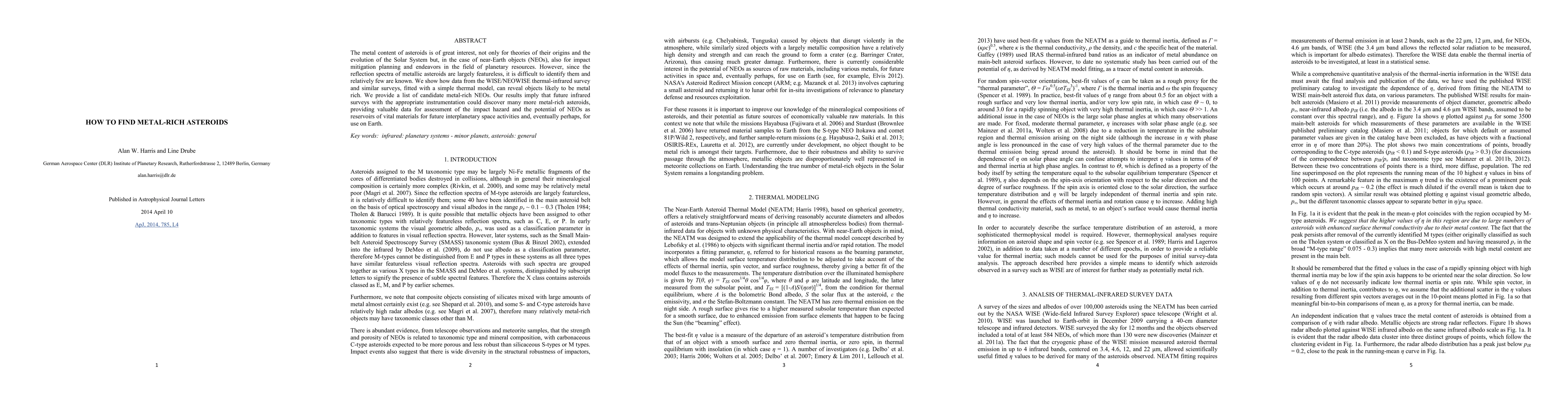 This paper demonstrates how thermal infrared data from the WISE/NEOWISE survey can identify metal-rich near-Earth objects (NEOs) by fitting the data with a thermal model. It provides a list of candidate metal-rich NEOs and suggests that future infrared surveys could uncover many more, aiding in impact hazard assessment and resource exploration.