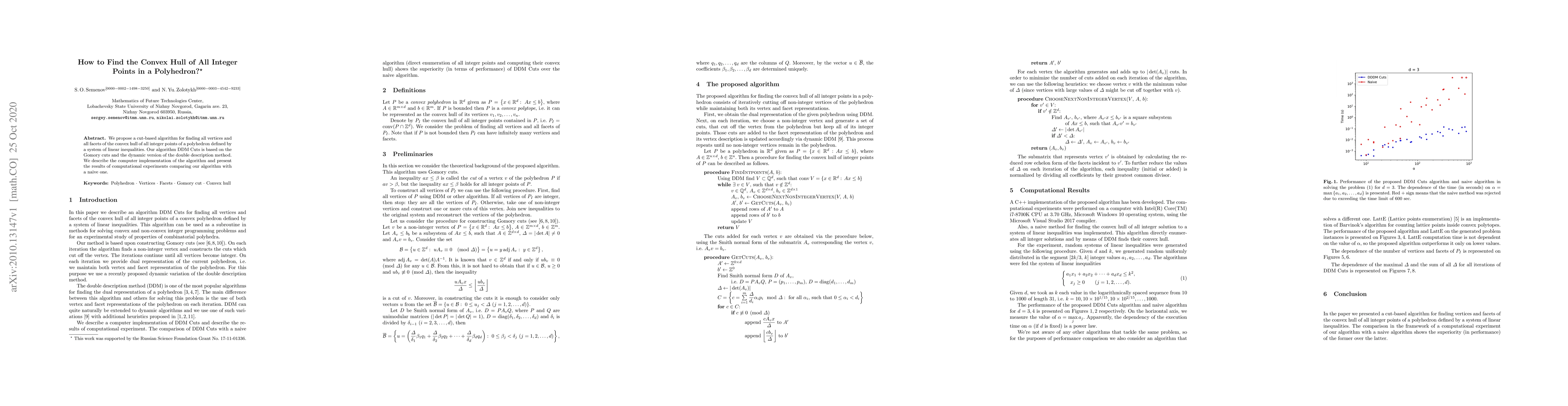We propose a cut-based algorithm for finding all vertices and all facets of the convex hull of all integer points of a polyhedron defined by a system of linear inequalities. Our algorithm DDM Cuts is based on the Gomory cuts and the dynamic version of the double description method. We describe the computer implementation of the algorithm and present the results of computational experiments comparing our algorithm with a naive one.