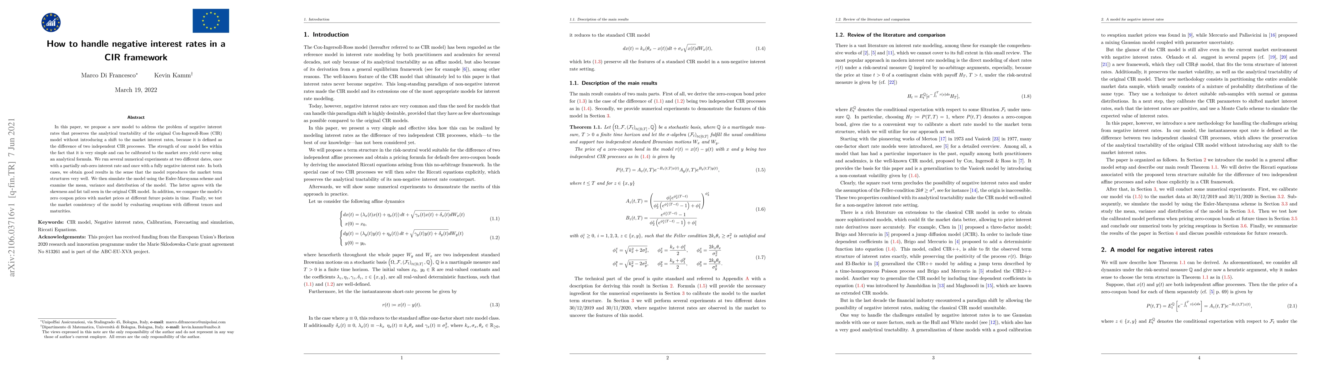 A new model is proposed to handle negative interest rates in a Cox-Ingersoll-Ross framework without altering market interest rates, achieving good results in reproducing term structures and simulating key characteristics.