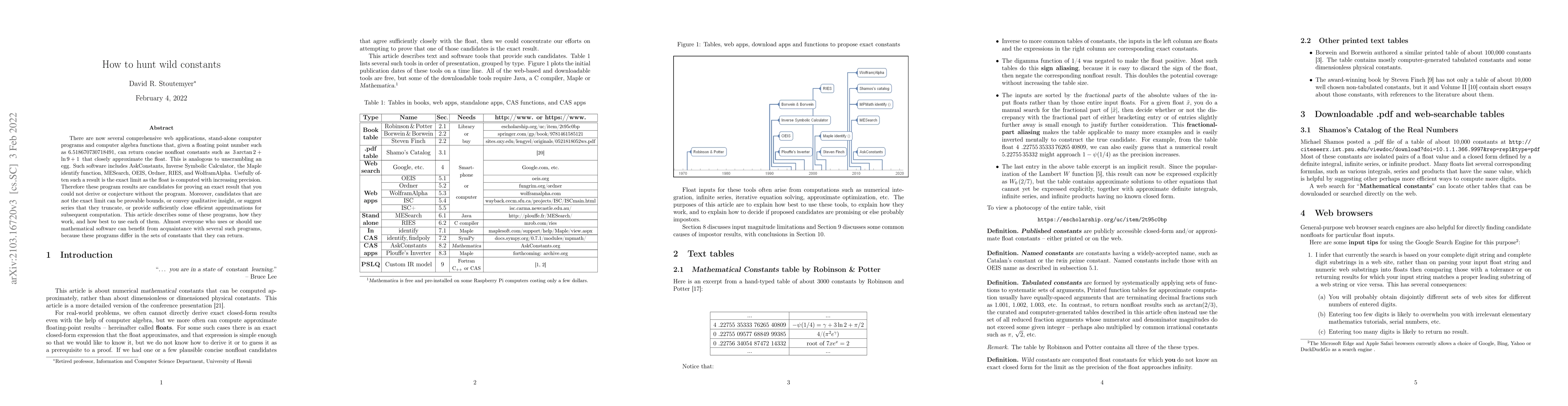 This paper introduces a collection of web applications and computer programs that can transform floating point numbers into concise nonfloat constants, which can prove exact results or provide qualitative insight. The article guides users on how to use these programs to explore mathematical constants.