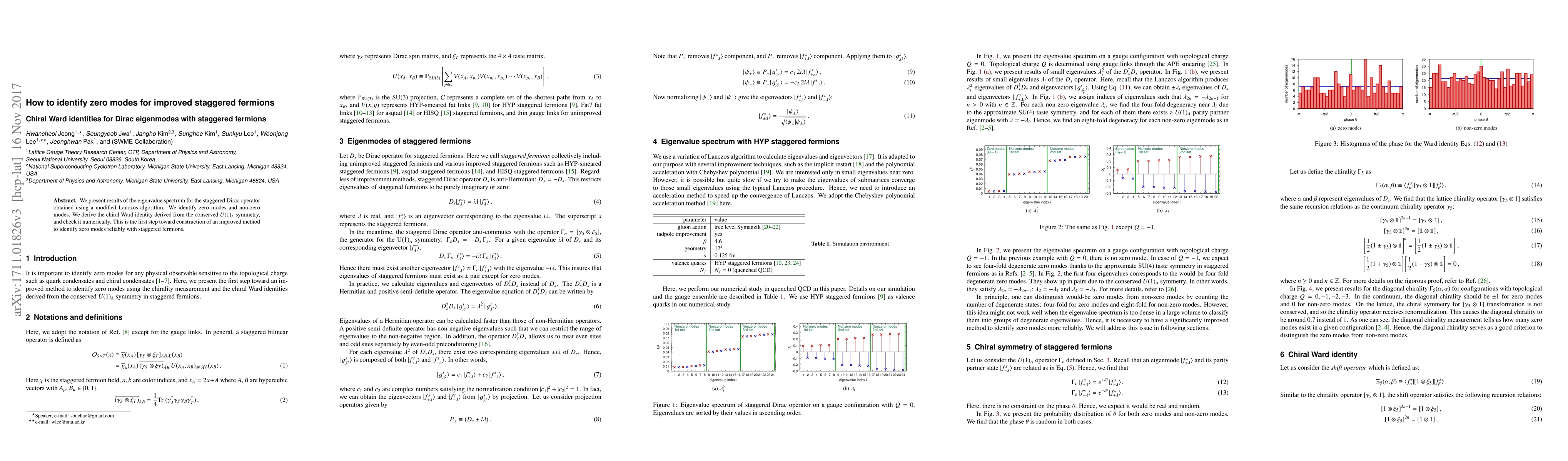 This research identifies zero modes in the staggered Dirac operator using a modified Lanczos algorithm, deriving the chiral Ward identity from the $U(1)_A$ symmetry and verifying it numerically. This lays the groundwork for developing a more reliable method to detect zero modes in staggered fermions.