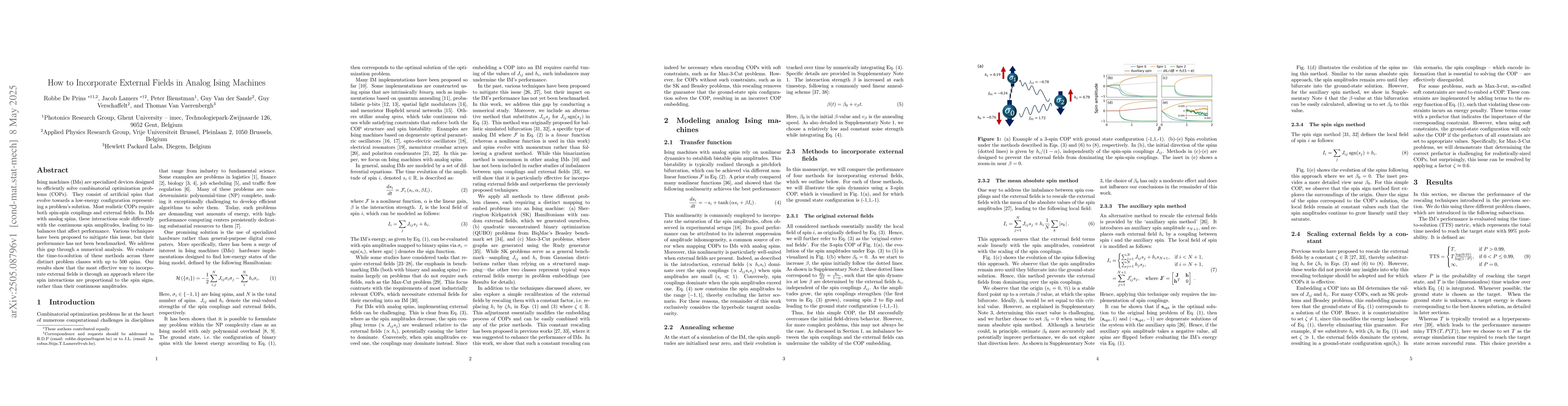 The paper presents a novel approach for effectively incorporating external fields in analog Ising machines by scaling spin interactions with spin signs instead of amplitudes.
