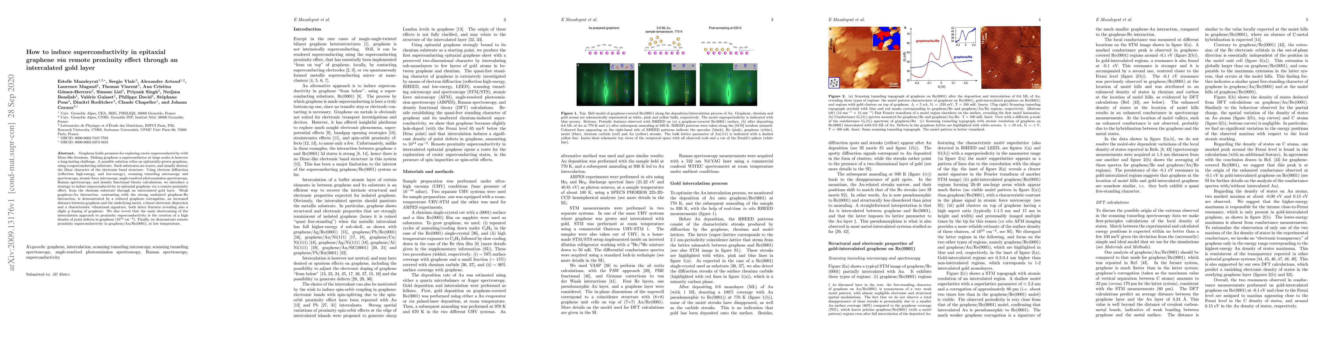 This paper proposes a method to induce superconductivity in epitaxial graphene via a remote proximity effect through an intercalated gold layer on a rhenium substrate, preserving its Dirac character. Despite creating a high density of point defects, the strategy successfully demonstrates remote superconductivity at low temperatures.