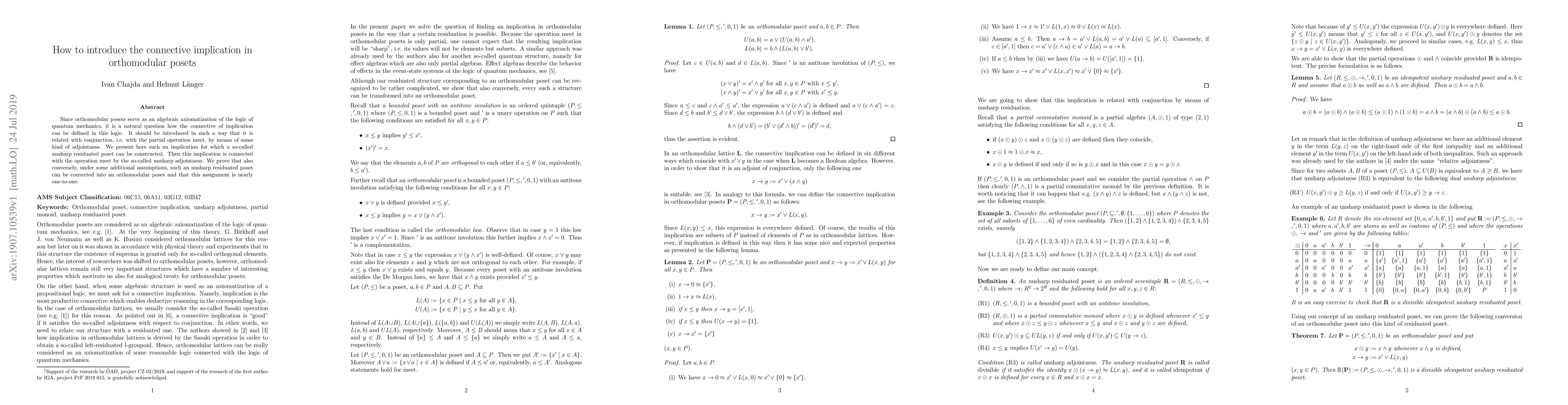 This paper introduces a connective implication in orthomodular posets, crucial for the logic of quantum mechanics, defined via unsharp residuated posets with unsharp adjointness, and proves a nearly one-to-one conversion between unsharp residuated posets and orthomodular posets under additional assumptions.