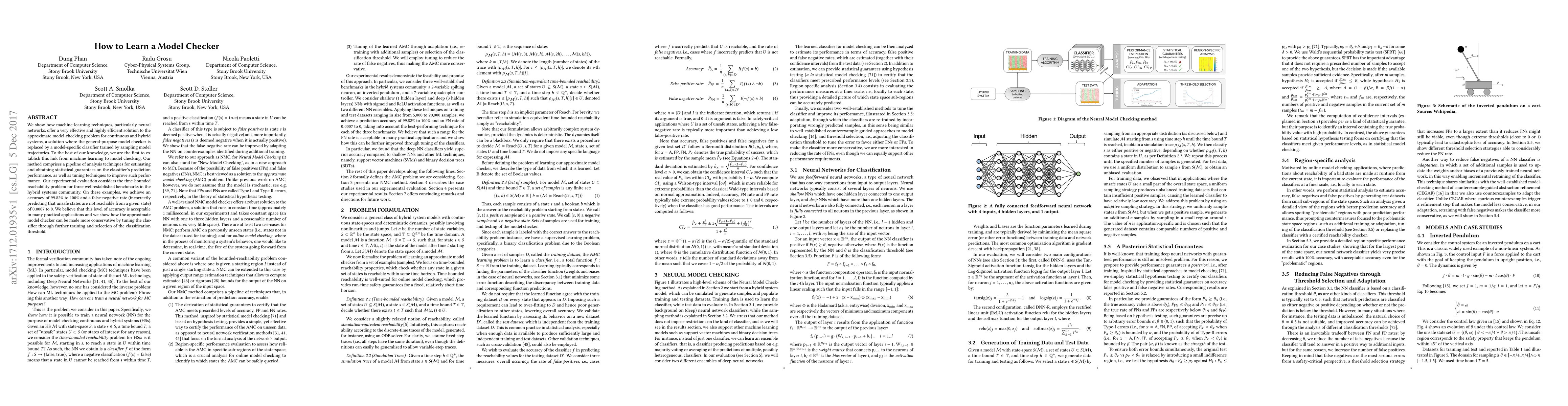 We show how machine-learning techniques, particularly neural networks, offer a very effective and highly efficient solution to the approximate model-checking problem for continuous and hybrid systems, a solution where the general-purpose model checker is replaced by a model-specific classifier trained by sampling model trajectories. To the best of our knowledge, we are the first to establish this link from machine learning to model checking. Our method comprises a pipeline of analysis techniques for estimating and obtaining statistical guarantees on the classifier's prediction performance, as well as tuning techniques to improve such performance. Our experimental evaluation considers the time-bounded reachability problem for three well-established benchmarks in the hybrid systems community. On these examples, we achieve an accuracy of 99.82% to 100% and a false-negative rate (incorrectly predicting that unsafe states are not reachable from a given state) of 0.0007 to 0. We believe that this level of accuracy is acceptable in many practical applications and we show how the approximate model checker can be made more conservative by tuning the classifier through further training and selection of the classification threshold.