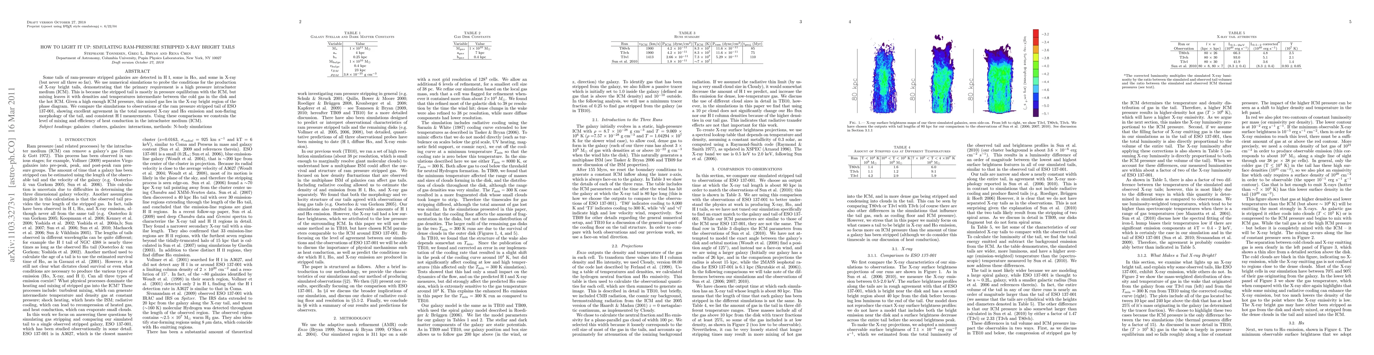 This paper uses numerical simulations to explore the conditions for producing X-ray bright tails in ram-pressure stripped galaxies, finding that a high-pressure intracluster medium is essential. The simulations match observations of ESO 137-001, providing insights into mixing and heat conduction efficiency in the intracluster medium.