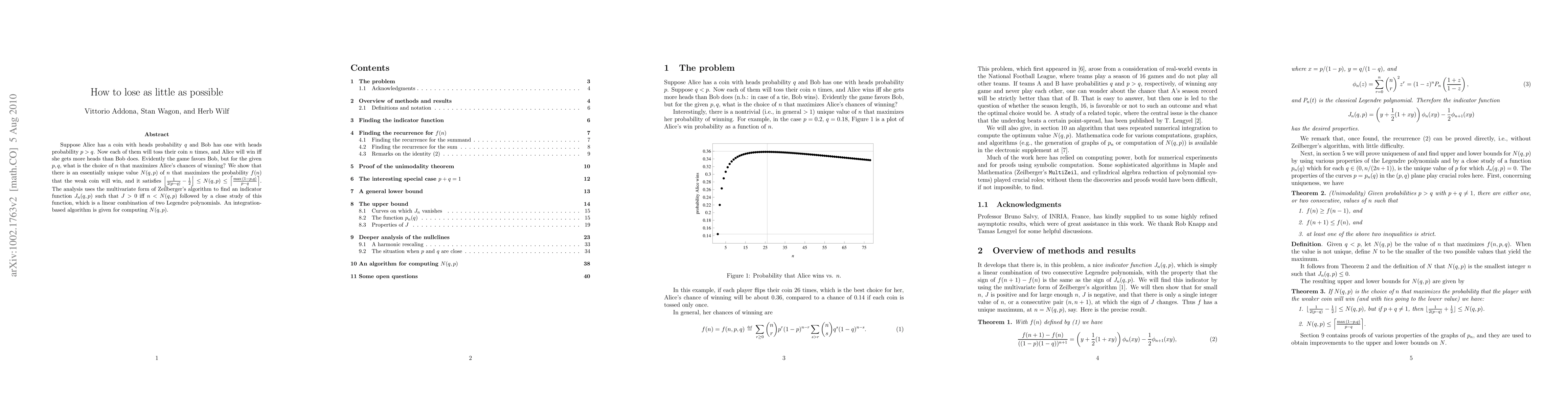 probability $f(n)$ that the weak coin will win, and it satisfies