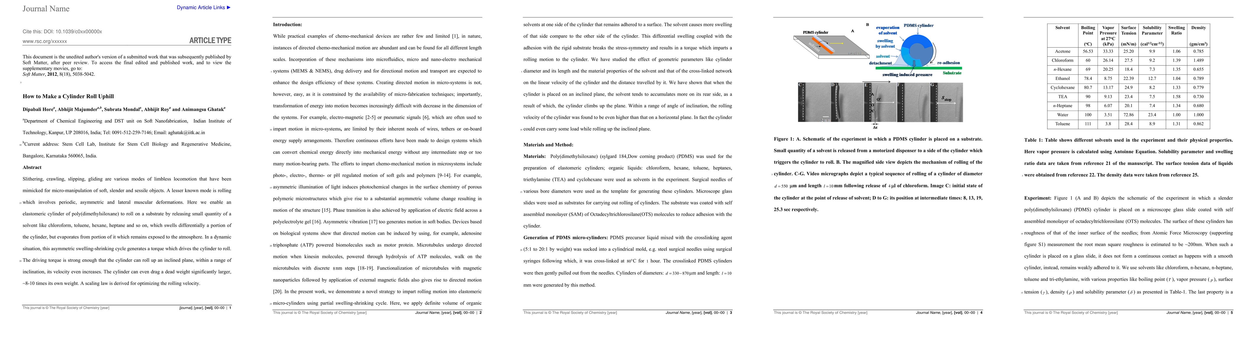 This paper explores how an elastomeric cylinder can roll uphill by using differential swelling and shrinking induced by solvent exposure, enabling it to generate sufficient torque for uphill movement and even drag heavier weights. A scaling law is provided to optimize the rolling velocity.