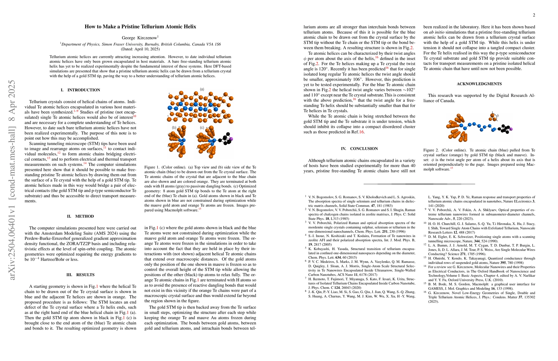 Researchers used DFT-based simulations to show that a pristine tellurium atomic helix can be created from a tellurium crystal using a gold STM tip, paving the way for further study of these systems.