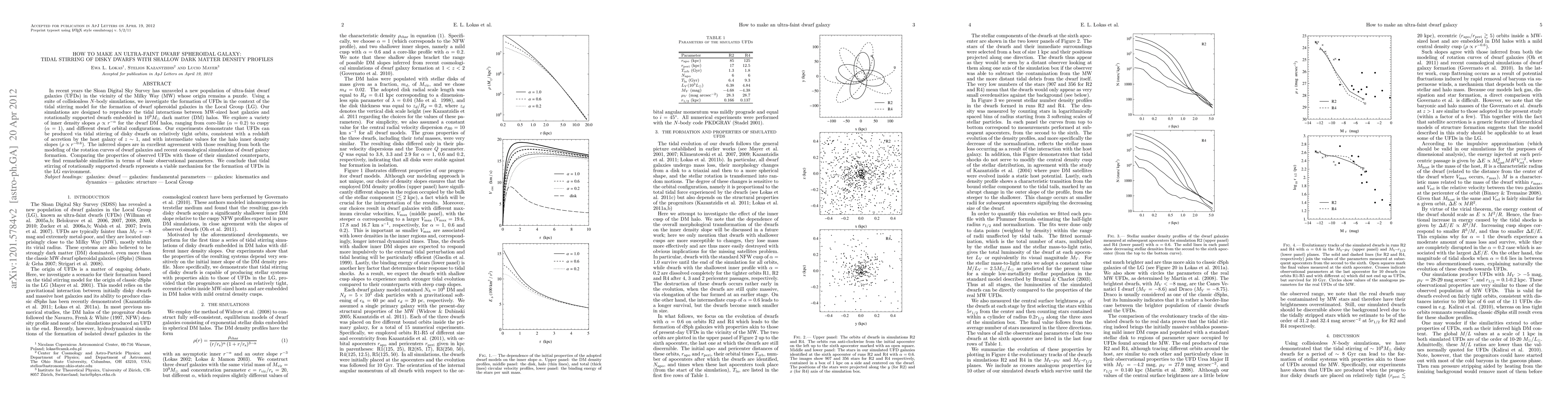 In recent years the Sloan Digital Sky Survey has unraveled a new population of ultra-faint dwarf galaxies (UFDs) in the vicinity of the Milky Way (MW) whose origin remains a puzzle. Using a suite of collisionless N-body simulations, we investigate the formation of UFDs in the context of the tidal stirring model for the formation of dwarf spheroidal galaxies in the Local Group (LG). Our simulations are designed to reproduce the tidal interactions between MW-sized host galaxies and rotationally supported dwarfs embedded in 10^9 M_sun dark matter (DM) halos. We explore a variety of inner density slopes \rho \propto r^{-\alpha} for the dwarf DM halos, ranging from core-like (\alpha = 0.2) to cuspy (\alpha = 1), and different dwarf orbital configurations. Our experiments demonstrate that UFDs can be produced via tidal stirring of disky dwarfs on relatively tight orbits, consistent with a redshift of accretion by the host galaxy of z \sim 1, and with intermediate values for the halo inner density slopes (\rho \propto r^{-0.6}). The inferred slopes are in excellent agreement with those resulting from both the modeling of the rotation curves of dwarf galaxies and recent cosmological simulations of dwarf galaxy formation. Comparing the properties of observed UFDs with those of their simulated counterparts, we find remarkable similarities in terms of basic observational parameters. We conclude that tidal stirring of rotationally supported dwarfs represents a viable mechanism for the formation of UFDs in the LG environment.