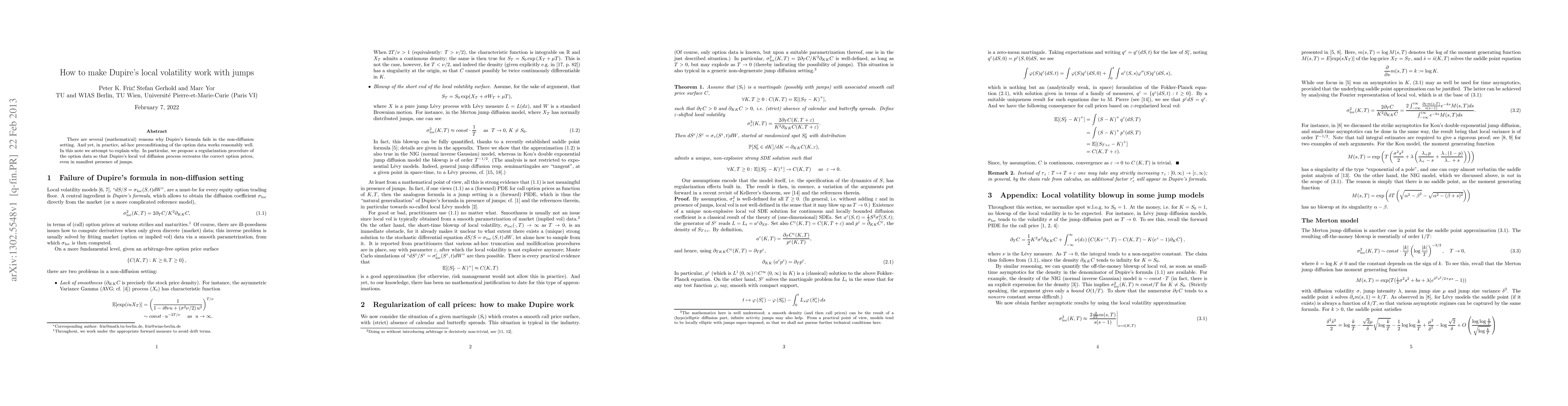 This paper explores the limitations of Dupire's local volatility formula in non-diffusion settings, particularly in the presence of jumps, and proposes a regularization method to precondition option data, enabling the formula to accurately recreate option prices despite the inclusion of jumps.