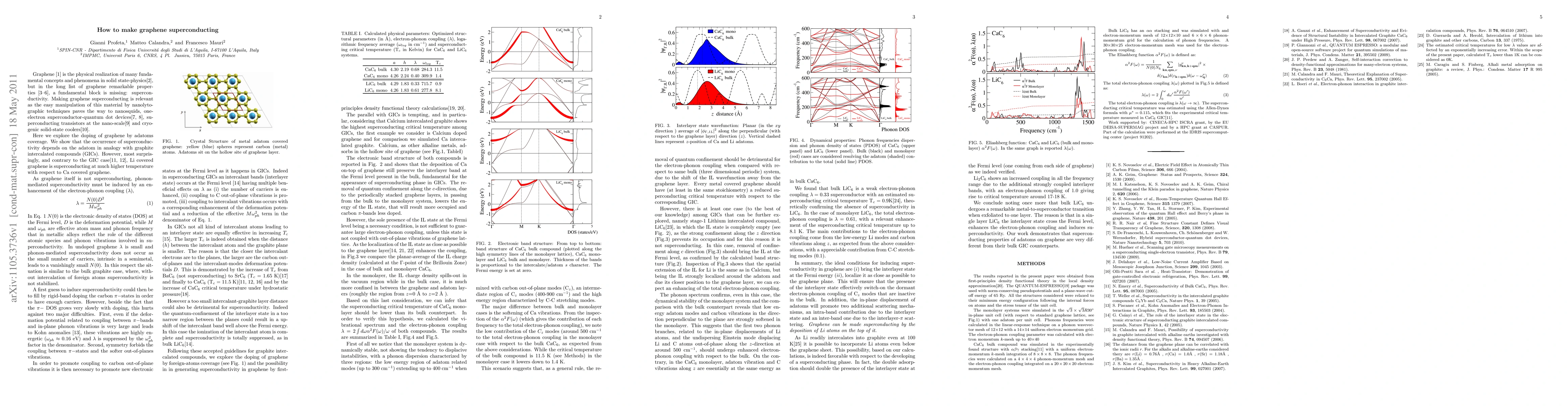 Graphene is the physical realization of many fundamental concepts and phenomena in solid state-physics, but in the long list of graphene remarkable properties, a fundamental block is missing: superconductivity. Making graphene superconducting is relevant as the easy manipulation of this material by nanolytographic techniques paves the way to nanosquids, one-electron superconductor-quantum dot devices, superconducting transistors at the nano-scale and cryogenic solid-state coolers. Here we explore the doping of graphene by adatoms coverage. We show that the occurrence of superconductivity depends on the adatom in analogy with graphite intercalated compounds (GICs). However, most surprisingly, and contrary to the GIC case, Li covered graphene is superconducting at much higher temperature with respect to Ca covered graphene.
