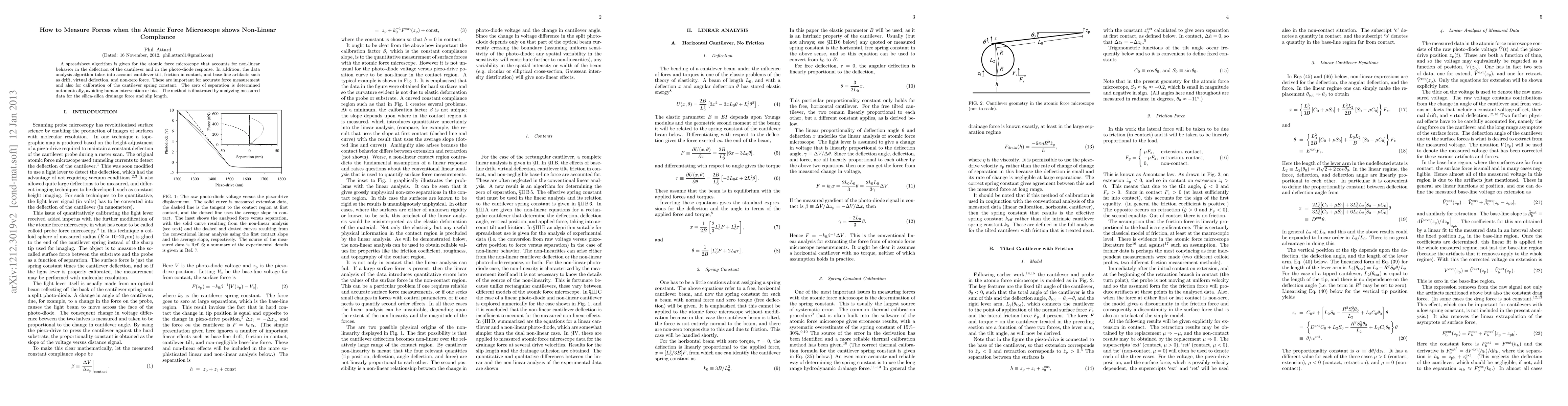 This paper presents a spreadsheet algorithm for atomic force microscopy to accurately measure forces despite non-linear compliance in cantilever deflection and photo-diode response, addressing issues like cantilever tilt, friction, and baseline artifacts. The method automatically determines the zero of separation, enhancing calibration and force measurement accuracy.