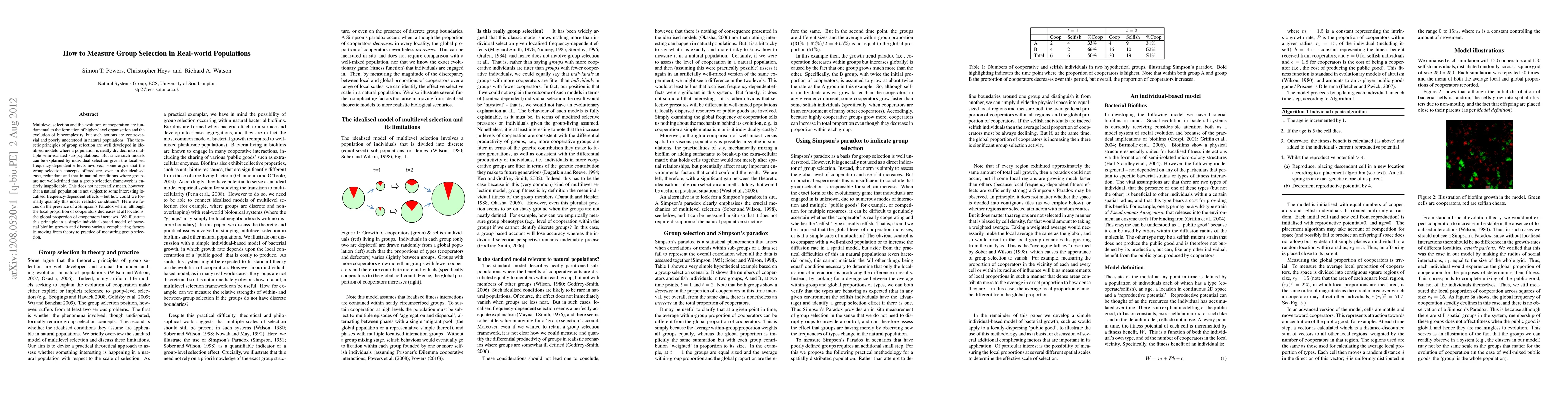 Multilevel selection and the evolution of cooperation are fundamental to the formation of higher-level organisation and the evolution of biocomplexity, but such notions are controversial and poorly understood in natural populations. The theoretic principles of group selection are well developed in idealised models where a population is neatly divided into multiple semi-isolated sub-populations. But since such models can be explained by individual selection given the localised frequency-dependent effects involved, some argue that the group selection concepts offered are, even in the idealised case, redundant and that in natural conditions where groups are not well-defined that a group selection framework is entirely inapplicable. This does not necessarily mean, however, that a natural population is not subject to some interesting localised frequency-dependent effects -- but how could we formally quantify this under realistic conditions? Here we focus on the presence of a Simpson's Paradox where, although the local proportion of cooperators decreases at all locations, the global proportion of cooperators increases. We illustrate this principle in a simple individual-based model of bacterial biofilm growth and discuss various complicating factors in moving from theory to practice of measuring group selection.